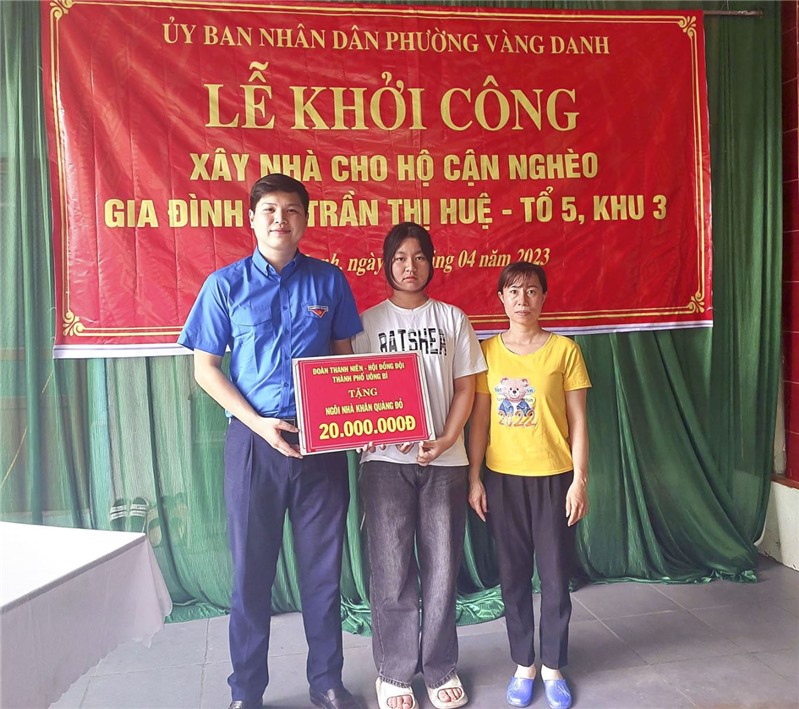 Thành đoàn trao hỗ trợ gia đình của thiếu nhi có hoàn cảnh khó khăn xây dựng “Ngôi nhà Khăn Quàng Đỏ” tại phường Vàng Danh.
