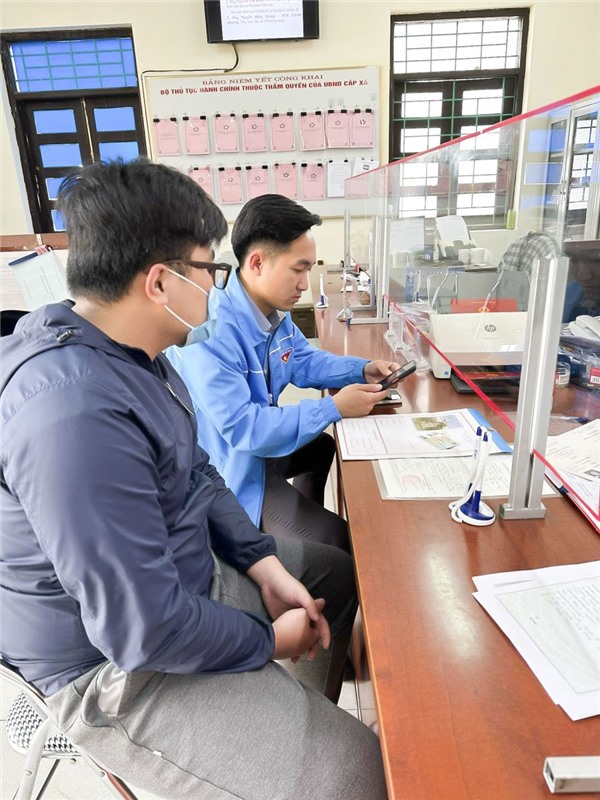 Đoàn viên thanh niên phường Trưng Vương và xã Thượng Yên Công ra quân hỗ trợ người dân kích hoạt định danh điện tử.
