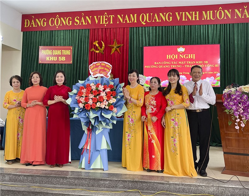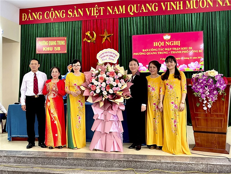 Ngày 05/01, khu 5B, phường Quang Trung tổ chức Hội nghị Ban công tác mặt trận nhiệm kỳ 2024-2026. Đây là hội nghị được chọn làm điểm của phường Quang Trung. Dự chúc mừng Hội nghị có đồng chí Hoàng Thị Thanh Huyền, Phó Chủ tịch Thường trực Ủy ban MTTQ thành phố; lãnh đạo Đảng ủy, Ủy ban MTTQ phường Quang Trung.