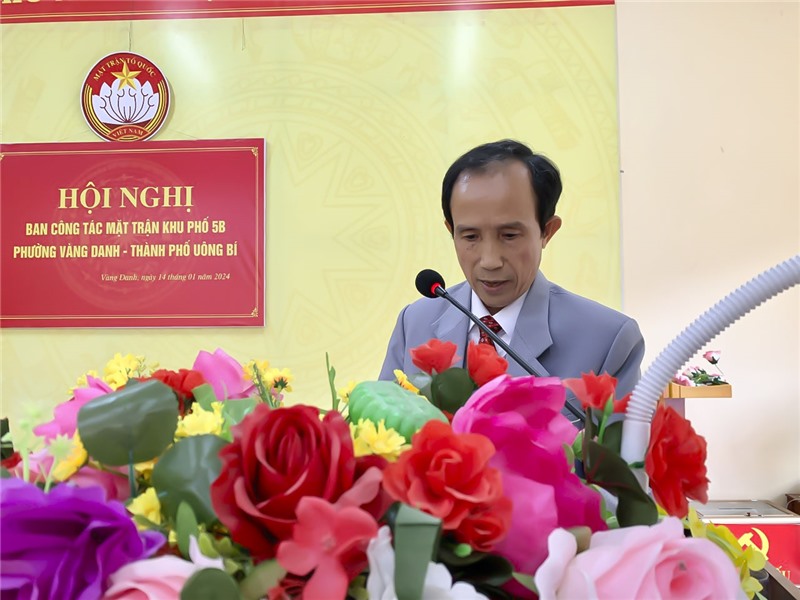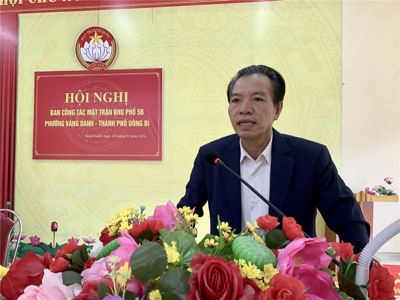 Sáng 14/1, Ban công tác Mặt trận khu 5B phường Vàng Danh đã tổ chức hội nghị đánh giá kết quả hoạt động nhiệm kỳ 2021-2024, triển khai phương hướng và chương trình hành động cho nhiệm kỳ 2024-2026. Tới dự có các đồng chí lãnh đạo Đảng uỷ, Uỷ ban MTTQ phường Vàng Danh; đại diện Ban công tác Mặt trận 10 khu dân cư trên địa bàn phường.