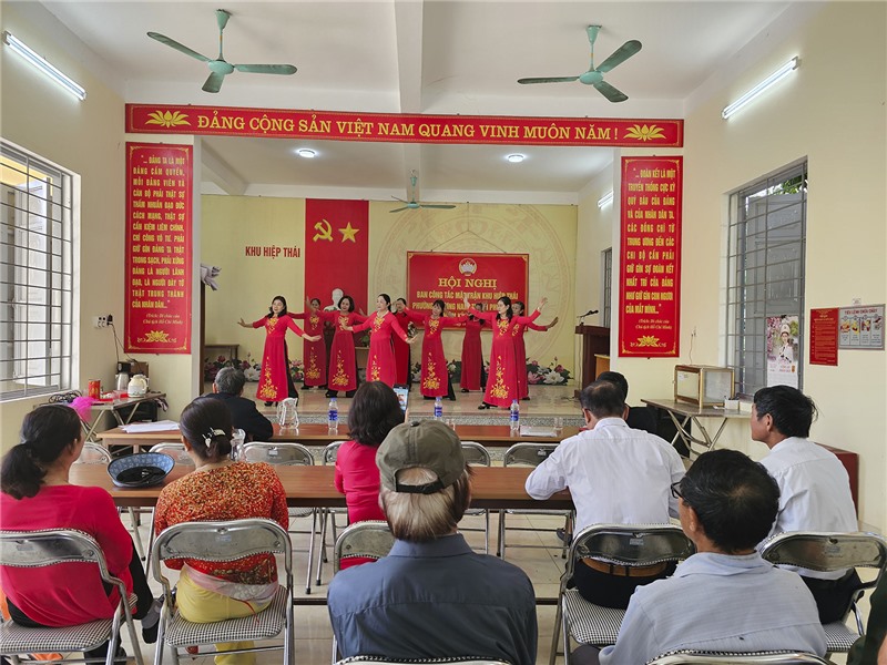 Nhân dân khu Hiệp Thái biểu diễn văn nghệ chào mừng tại hội nghị.