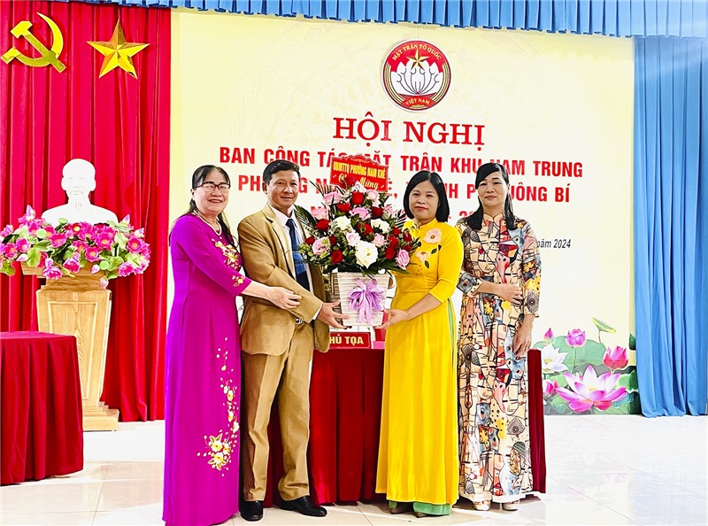 Đại biểu tặng hoa chúc mừng hội nghị Ban công tác Mặt trận khu Nam Trung, nhiệm kỳ 2024-2026.