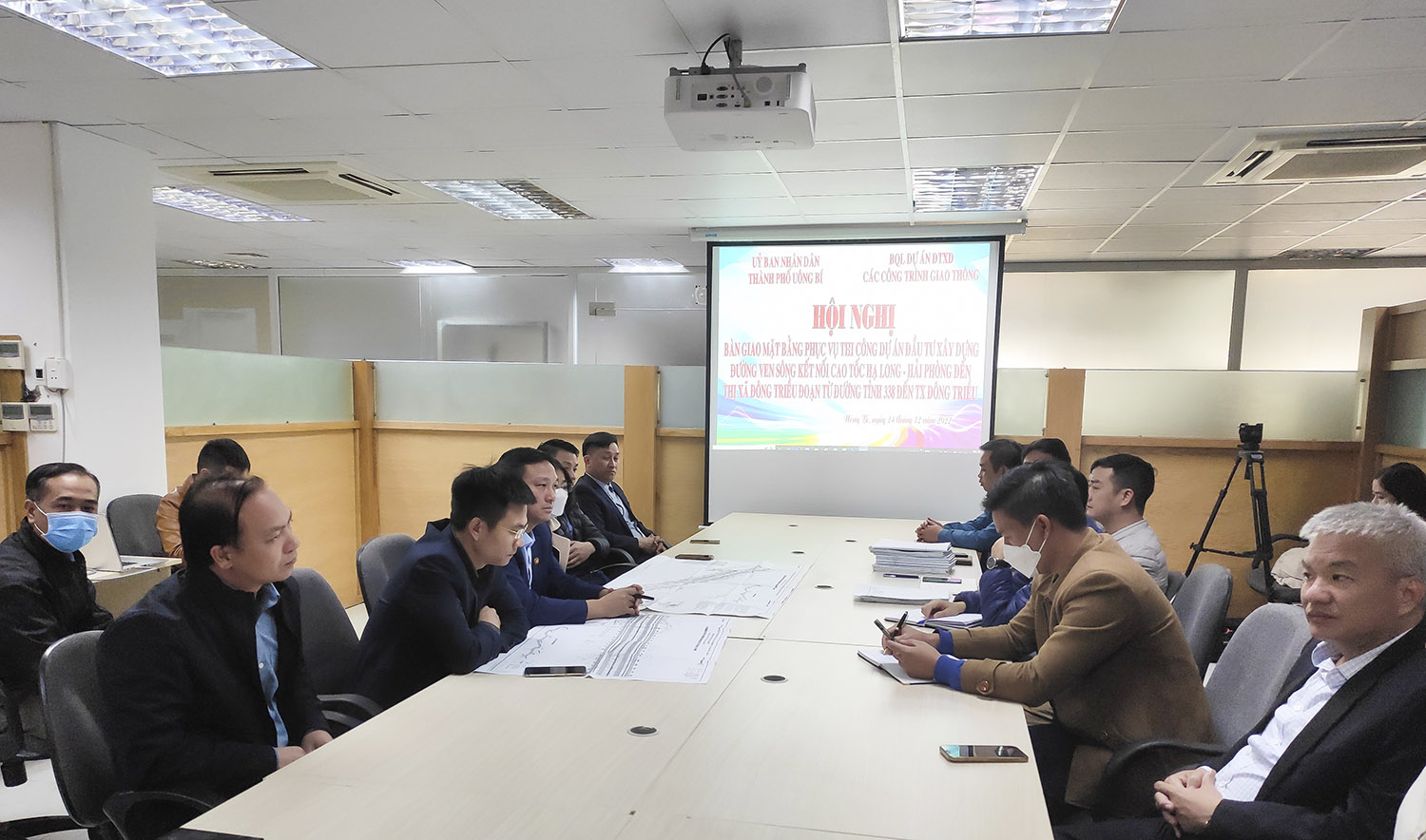 Tại hội nghị, UBND thành phố Uông Bí đã bàn giao mặt bằng cho Ban QLDA ĐTXD các công trình giao thông tỉnh toàn tuyến thuộc địa bàn thành phố Uông Bí. Đối với đoạn từ đầu tuyến (giáp địa phận thị xã Quảng Yên) đến nút giao đường Trần Hưng Đạo kéo dài: Ban QLDA ĐTXD các công trình giao thông tỉnh nhận bàn giao mặt bằng tại thực địa. Thời gian xong trước 16h00 ngày 24/12/2022. Đối với đoạn từ nút giao đường Trần Hưng Đạo kéo dài đến cuối tuyến (giáp địa phận thị xã Đông Triều), Ban QLDA ĐTXD các công trình giao thông tỉnh có kế hoạch nhận bàn giao mặt bằng thời gian xong trước 20/01/2023.