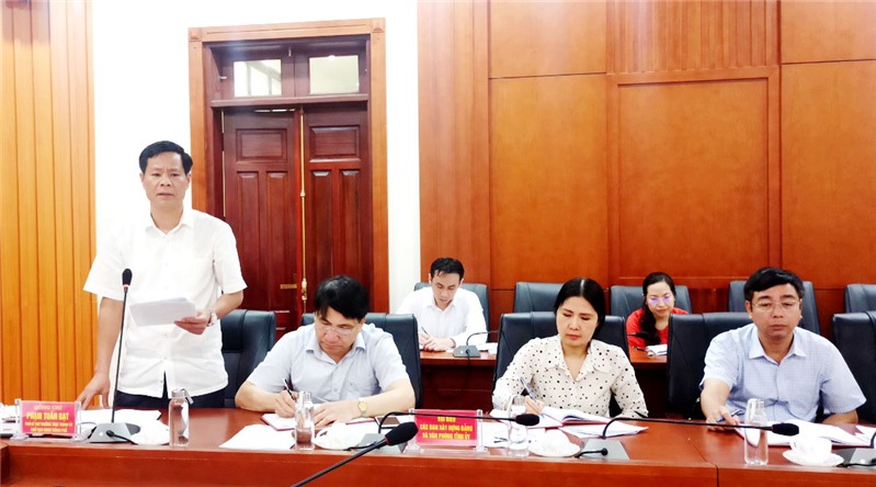 Đồng chí Nghiêm Xuân Cường, Tỉnh ủy viên, Bí thư Thành ủy đã chủ trì hội nghị Ban Thường vụ phát biểu chỉ đạo hội nghị.