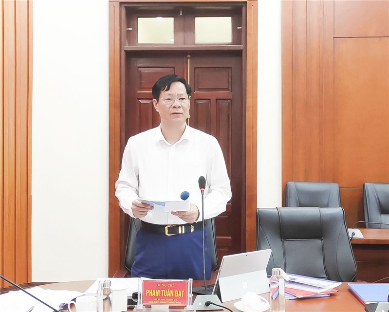 Đồng chí Phạm Tuấn Đạt, Phó Bí thư Thành uỷ, Chủ tịch UBND thành phố phát biểu tại hội nghị.