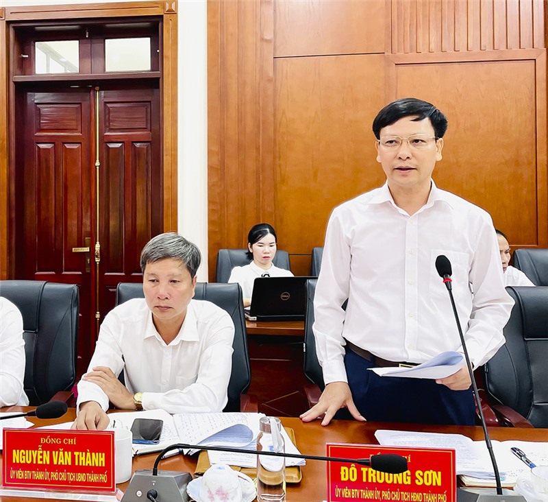 Đồng chí Đỗ Trường Sơn, UVBTV Thành uỷ, Phó Chủ tịch HĐND thành phố phát biểu tại hội nghị.