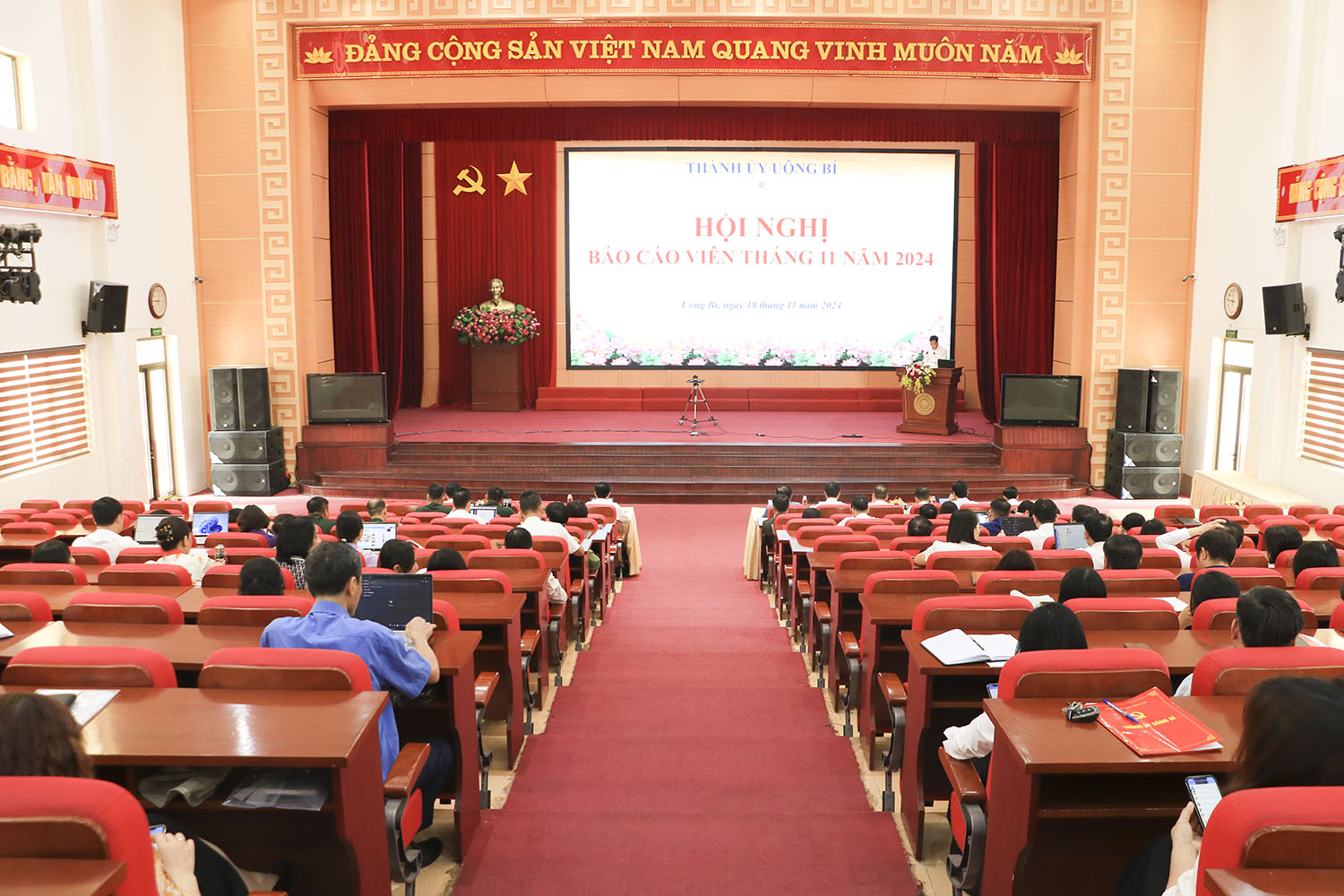 Sáng 18/11, Thành uỷ Uông Bí tổ chức Hội nghị báo cáo viên tháng 11/2024 dưới hình thức trực tiếp kết hợp trực tuyến. Dự tại điểm cầu Trung tâm tổ chức hội nghị thành phố có đồng chí Nguyễn Chiến Thắng, Phó Bí thư Thường trực thành uỷ, Chủ tịch HĐND thành phố; đồng chí Phạm Tuấn Đạt - Phó Bí thư Thành uỷ, Chủ tịch UBND thành phố.
