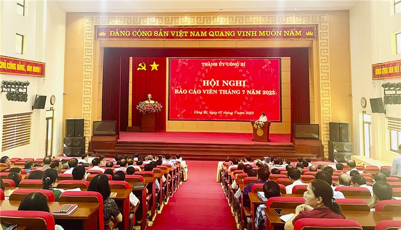 Ngày 7-7, Thành ủy Uông Bí tổ chức hội nghị Báo cáo viên tháng 7 năm 2023. Dự hội nghị có các đồng chí: Nghiêm Xuân Cường, Tỉnh ủy viên, Bí Thư Thành ủy, Chủ tịch HĐND thành phố; Nguyễn Chiến Thắng, Phó Bí thư Thường trực Thành ủy; Phạm Tuấn Đạt, Phó Bí thư Thành ủy, Chủ tịch UBND thành phố.