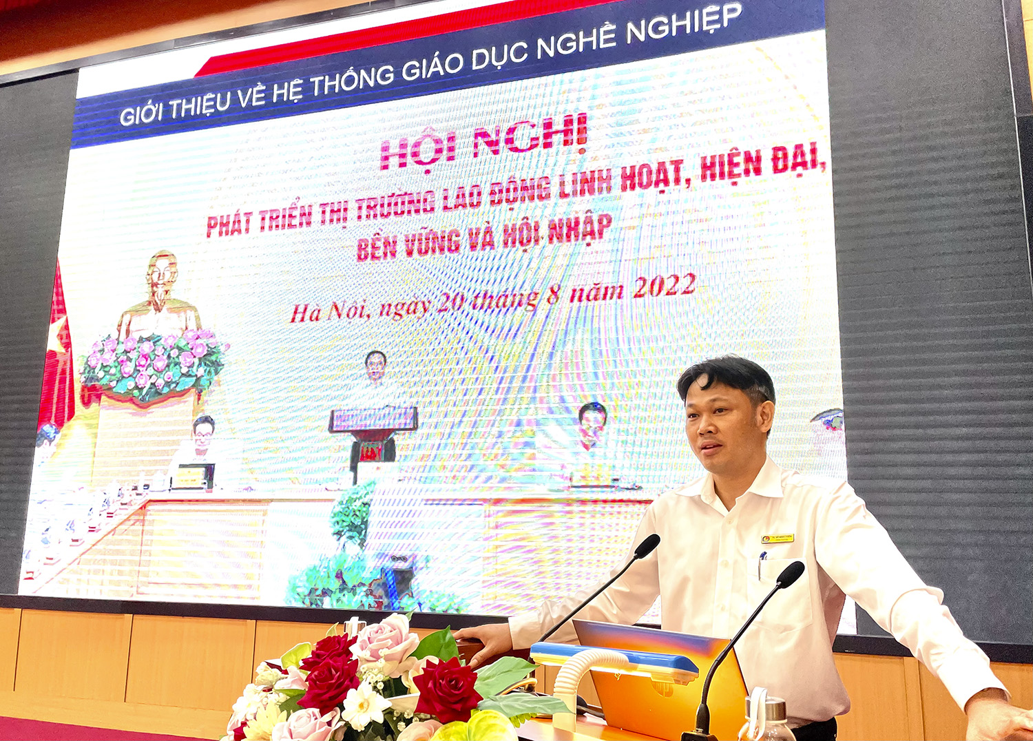Hội nghị cũng nghe Tiến sĩ Đỗ Minh Chiến, Bí thư Đảng ủy, Hiệu trưởng Trường Cao đẳng Công nghiệp và Xây dựng truyền đạt nội dung công tác giáo dục nghề nghiệp và định hướng phân luồng học sinh phổ thông, góp phần nâng cao chất lượng đào tạo nguồn nhân lực, đáp ứng yêu cầu phát triển kinh tế - xã hội trong giai đoạn hiện nay. Trong đó nêu rõ mục tiêu chung của giáo dục nghề nghiệp là nhằm đào tạo nhân lực trực tiếp cho sản xuất, kinh doanh và dịch vụ, có năng lực hành nghề tương ứng với trình độ đào tạo; có đạo đức, sức khỏe; có trách nhiệm nghề nghiệp; có khả năng sáng tạo, thích ứng với môi trường làm việc trong bối cảnh hội nhập quốc tế; bảo đảm nâng cao năng suất, chất lượng lao động; tạo điều kiện cho người học sau khi hoàn thành khóa học có khả năng tìm việc làm, tự tạo việc làm hoặc học lên trình độ cao hơn. Báo cáo viên đã cung cấp các thông tin về kỹ năng, năng suất lao động, tỷ lệ lao động qua đào tạo của Việt Nam so với các nước trong khu vực và thế giới; khẳng định vai trò của việc làm tốt công tác giáo dục hướng nghiệp, định hướng nghề nghiệp cho học sinh phổ thông sẽ là tiền đề thúc đẩy công tác phân luồng trong giáo dục ngày càng hiệu quả, góp phần nâng cao chất lượng giáo dục và chất lượng nguồn nhân lực, đáp ứng yêu cầu phát triển kinh tế - xã hội trong từng giai đoạn phát triển đất nước.