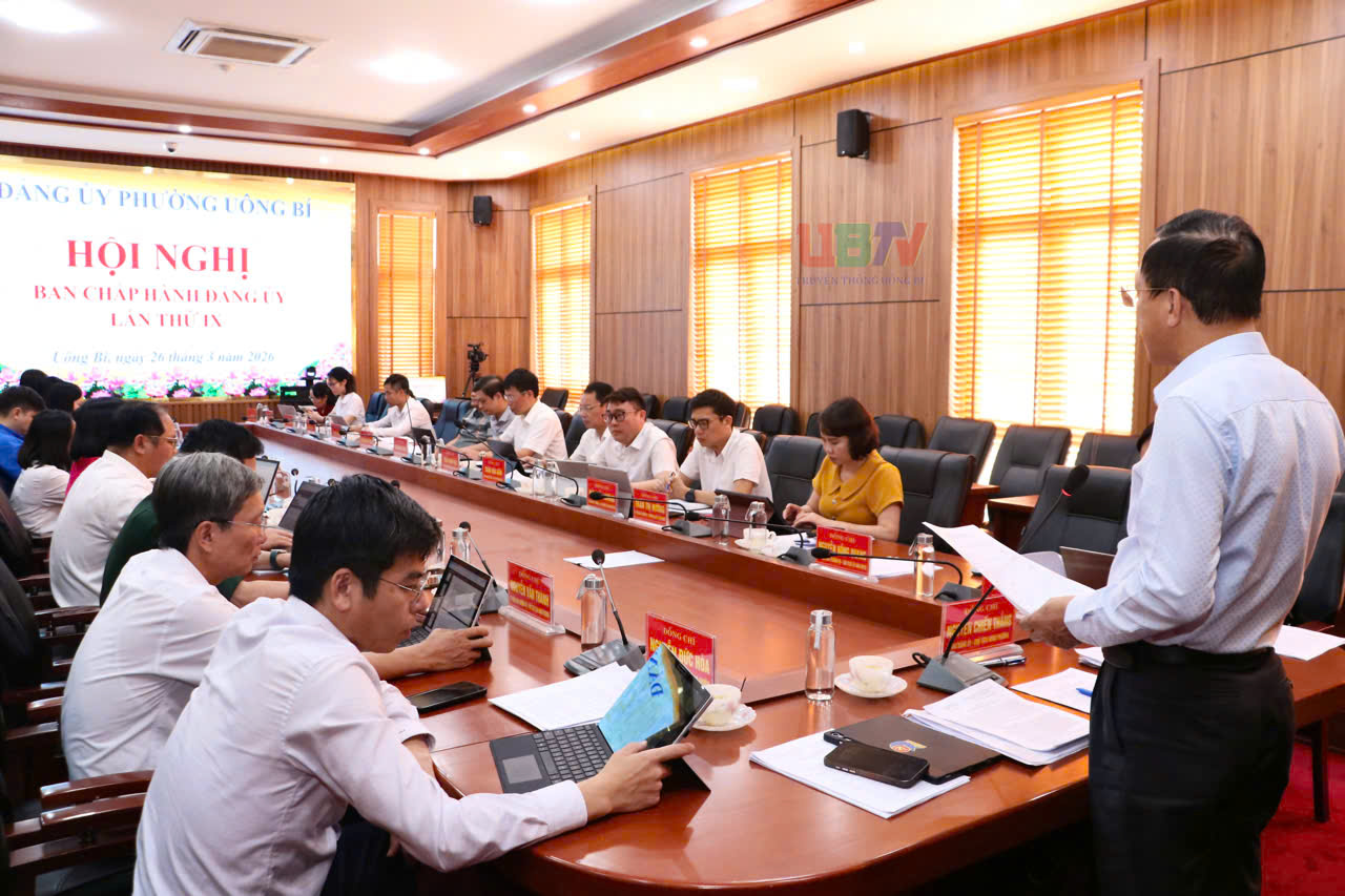 Chiều ngày 26/3, BCH Đảng bộ phường Uông Bí đã tổ chức hội nghị để thảo luận và cho ý kiến về một số nội dung theo thẩm quyền. Đồng chí Nguyễn Chiến Thắng – Bí thư Đảng ủy, Chủ tịch HĐND phường chủ trì hội nghị.