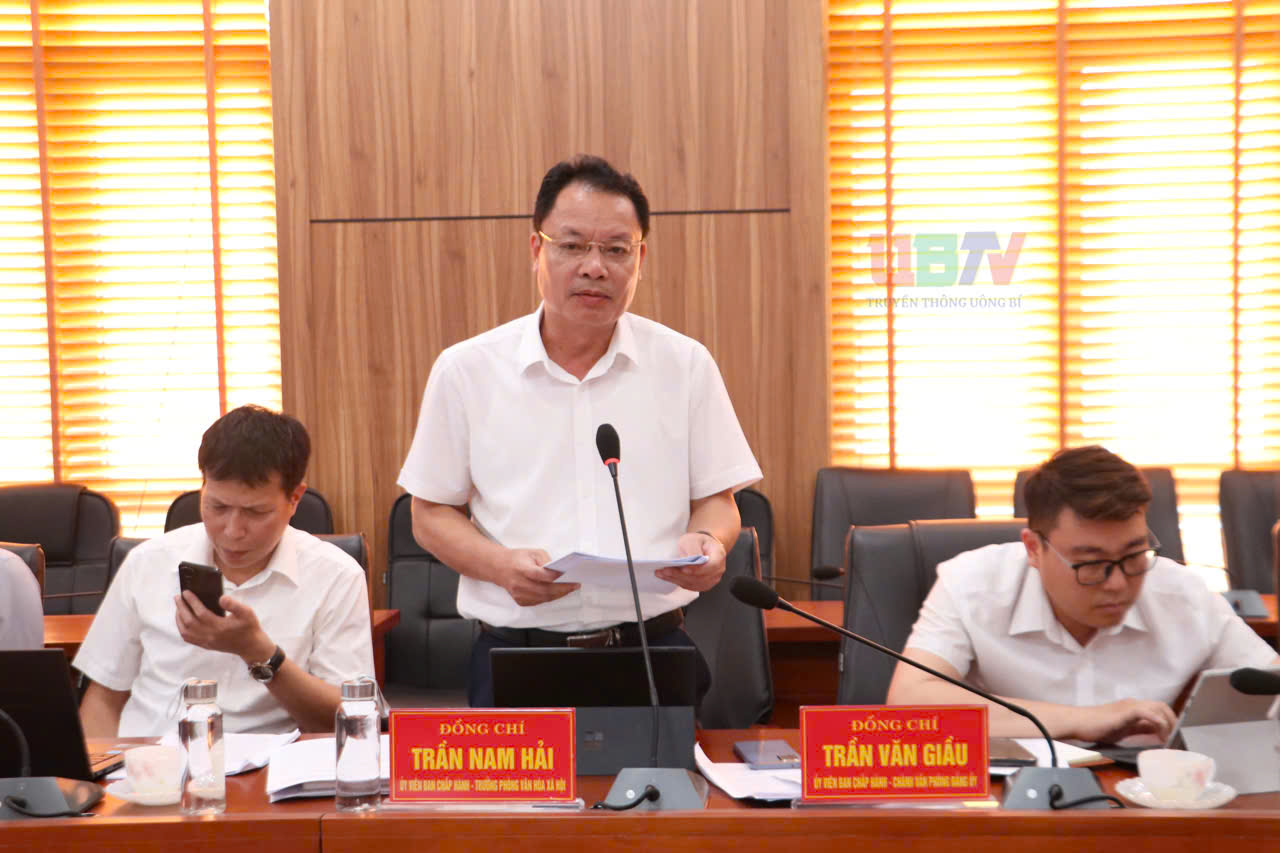 Đồng chí Trần Nam Hải - Trưởng phòng Văn hóa - Xã hội phường phát biểu ý kiến.