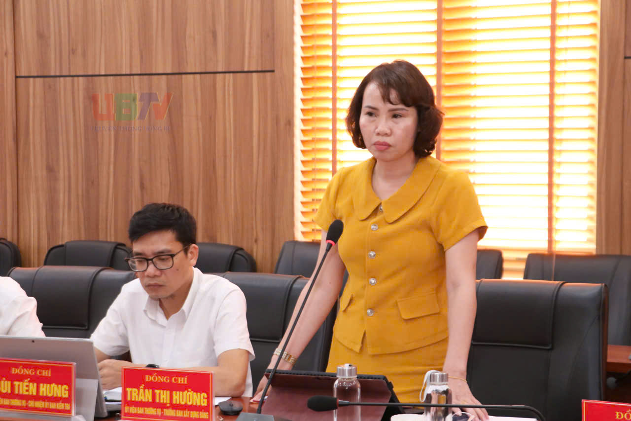 Đồng chí Trần Thị Hường - Ủy viên BTV Đảng ủy, trưởng Ban Xây dựng Đảng, Đảng ủy phường phát biểu ý kiến.