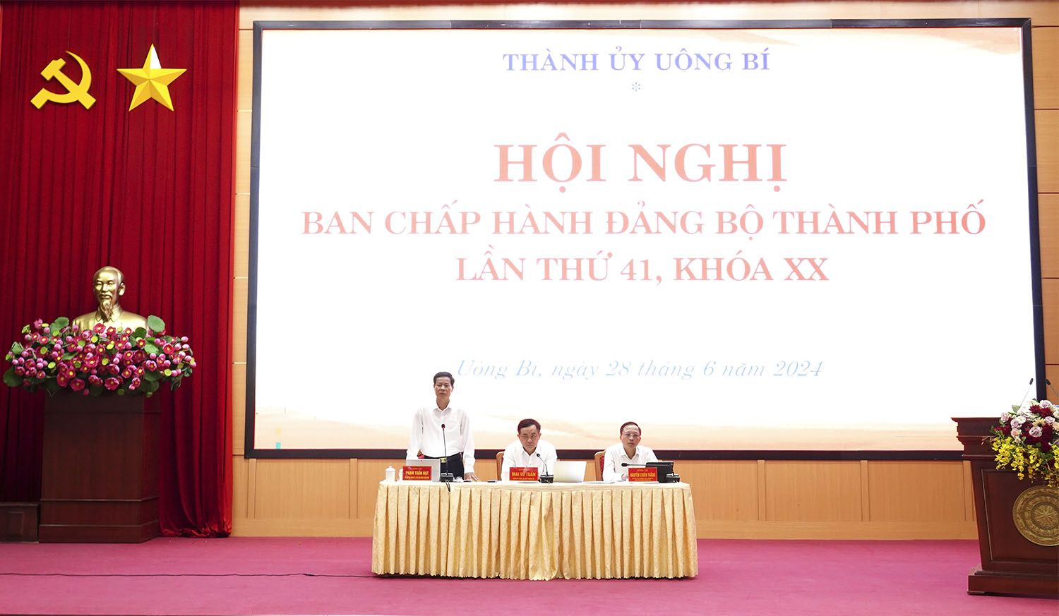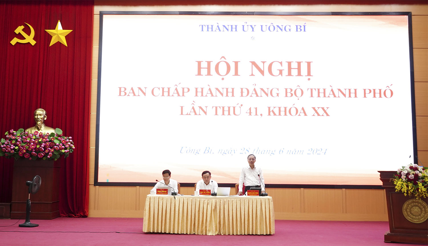 Ngày 28/06, Thành ủy Uông Bí tổ chức Hội nghị BCH Đảng bộ Thành phố lần thứ 41, nhằm đánh giá kết quả công tác 6 tháng đầu năm, triển khai phương hướng nhiệm vụ 6 tháng cuối năm. Đồng chí Mai Vũ Tuấn, Uỷ viên BCH Đảng bộ tỉnh, Bí thư Thành ủy; đồng chí Nguyễn Chiến Thắng, Phó Bí thư Thường trực Thành ủy; đồng chí Phạm Tuấn Đạt, Phó Bí thư Thành ủy, Chủ tịch UBND thành phố chủ trì hội nghị.