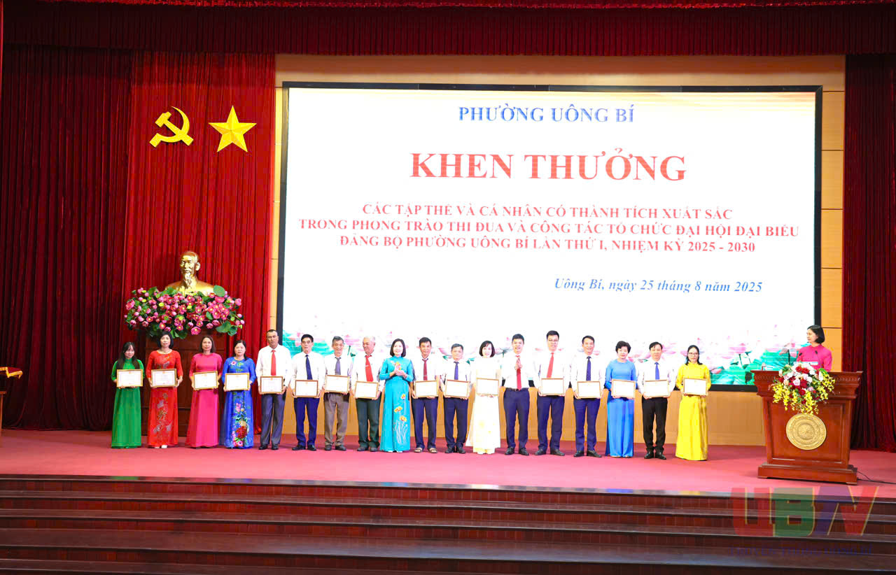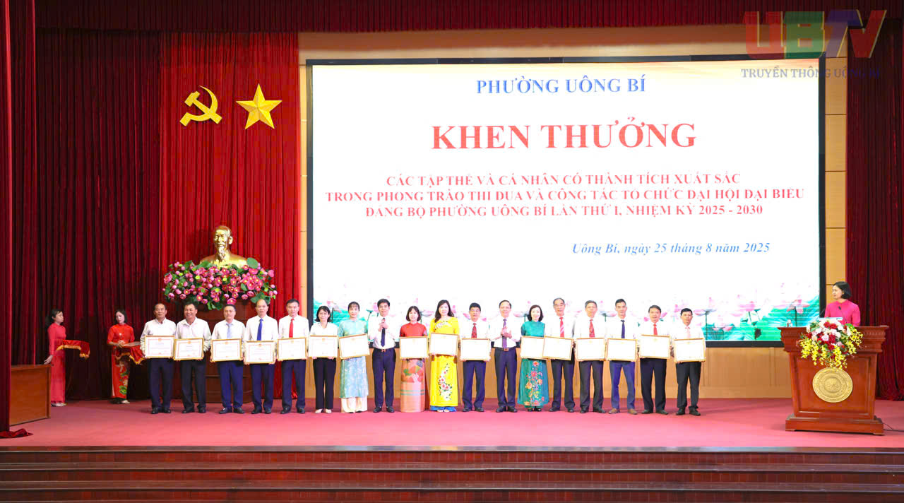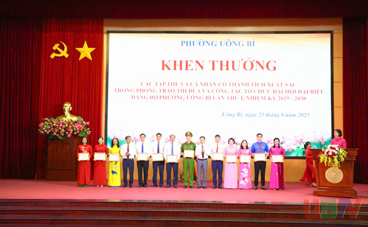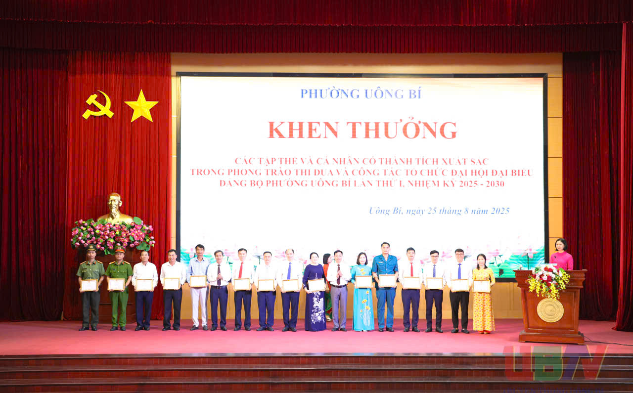 Tại hội nghị, phường Uông Bí đã biểu dương, khen thưởng 17 tập thể và 33 cá nhân có thành tích xuất sắc trong trong thực hiện phong trào thi đua yêu nước giai đoạn 2020-2025; tặng Giấy khen cho 15 tập thể và 27 cá nhân có thành tích xuất sắc trong hoạt động thi đua Kỷ niệm 80 năm Cách mạng Tháng Tám thành công và Quốc khánh 02/09.