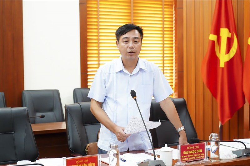 Đồng chí Đào Ngọc Sơn - Uỷ viên BTV, Trưởng ban Dân vận Thành uỷ, Chủ tịch Ủy ban MTTQ thành phố phát biểu tại hội nghị.