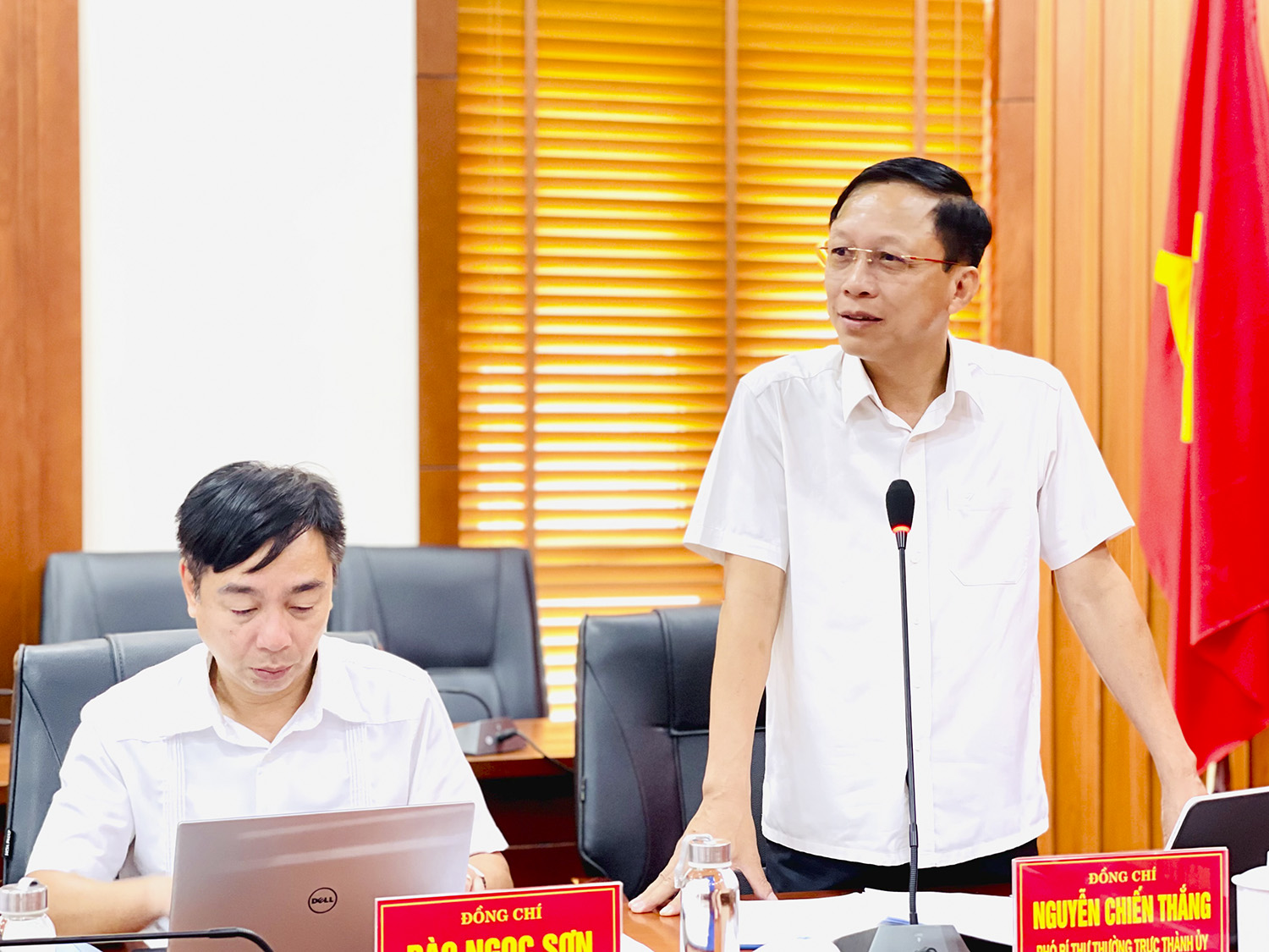 Đồng chí Nguyễn Chiến Thắng, Phó Bí thư Thường trực Thành ủy phát biểu tại hội nghị.