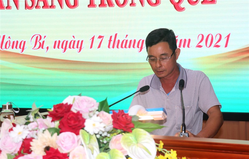 Đại diện hộ dân đăng ký trồng Quế phát biểu tại hội nghị.