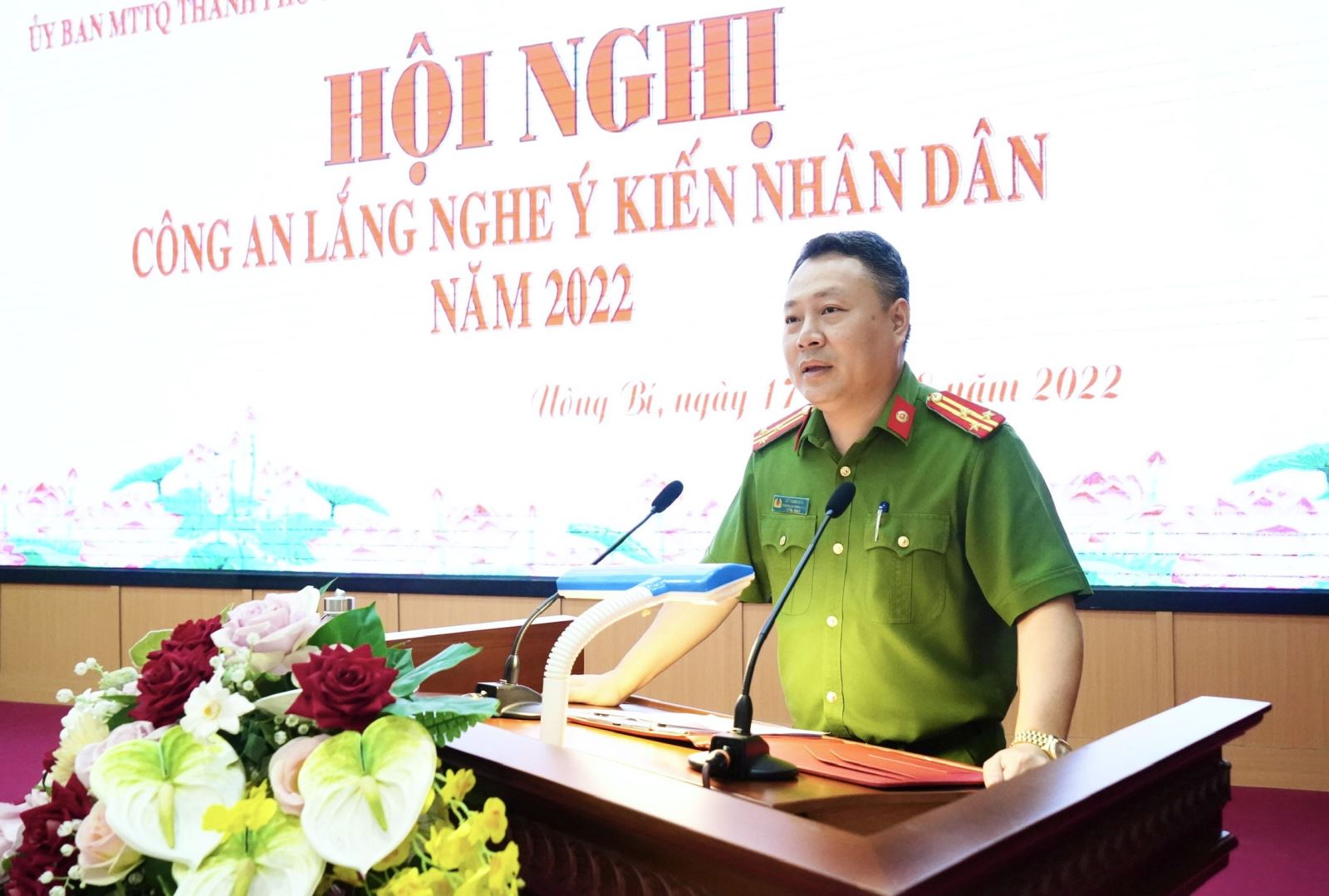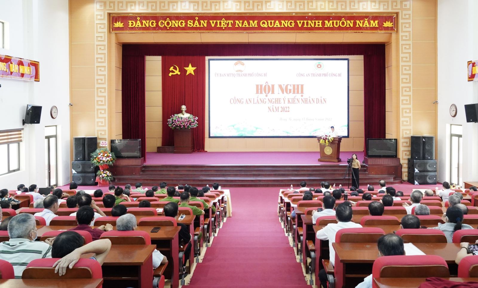 Để chuẩn bị cho hội nghị công an lắng nghe ý kiến Nhân dân cấp thành phố năm 2022, Công an các xã, phường phối hợp với Uỷ ban MTTQ đã tổ chức lấy ý kiến tham gia của Nhân dân đóng góp cho lực lượng công an tới từng tổ dân, khu phố. Qua đó đã có 2.376 ý kiến tham gia của Nhân dân, trong đó có 2.334 ý kiến (chiếm 98,2%) khẳng định và đánh giá cao tinh thần, trách nhiệm của lực lượng công an đối với công tác ANTT ở cơ sở, cũng như ghi nhận sự chuyển biến tích cực về tinh thần phục vụ nhân dân, trách nhiệm, năng lực thực tiễn, thái độ, lễ tiết, tác phong trong tiếp nhận các vụ việc của lực lượng công an. Ngoài những ý kiến đóng góp xây dựng lực lượng công an, Nhân dân đã cung cấp nhiều nguồn thông tin có giá trị giúp lực lượng điều tra, xác minh, xử lý các vụ việc liên quan đến ANTT trên địa bàn. Tại hội nghị cấp thành phố, đã có 7 ý kiến đóng góp trực tiếp của Nhân dân đối với lực lượng công an, trong đó tập trung ở các nội dung như: tăng cường đảm bảo an toàn giao thông tại một số khu vực giao lộ, tuyến đường đông dân cư; đề nghị lực lượng công an cập nhật thường xuyên, kịp thời những thủ đoạn, hình thức lừa đảo, các biện pháp nhận diện và đấu tranh phòng chống tội phạm cho Nhân dân.