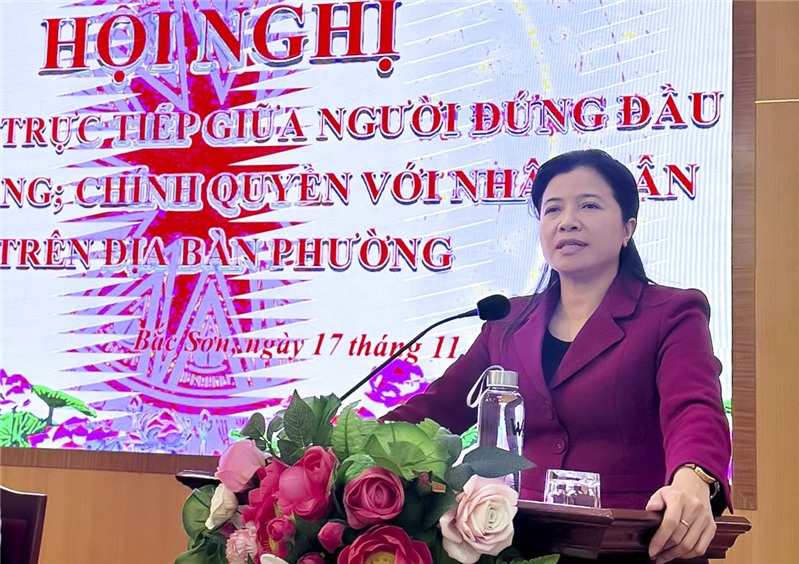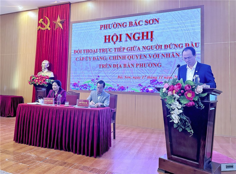 Sáng 17/11, tại UBND phường Bắc Sơn đã diễn ra Hội nghị đối thoại trực tiếp giữa người đứng đầu cấp ủy, chính quyền với Nhân dân địa phương. Đồng chí Đỗ Thị Thúy Hạnh, Bí thư Đảng ủy, Chủ tịch UBND phường dự và chủ trì hội nghị.