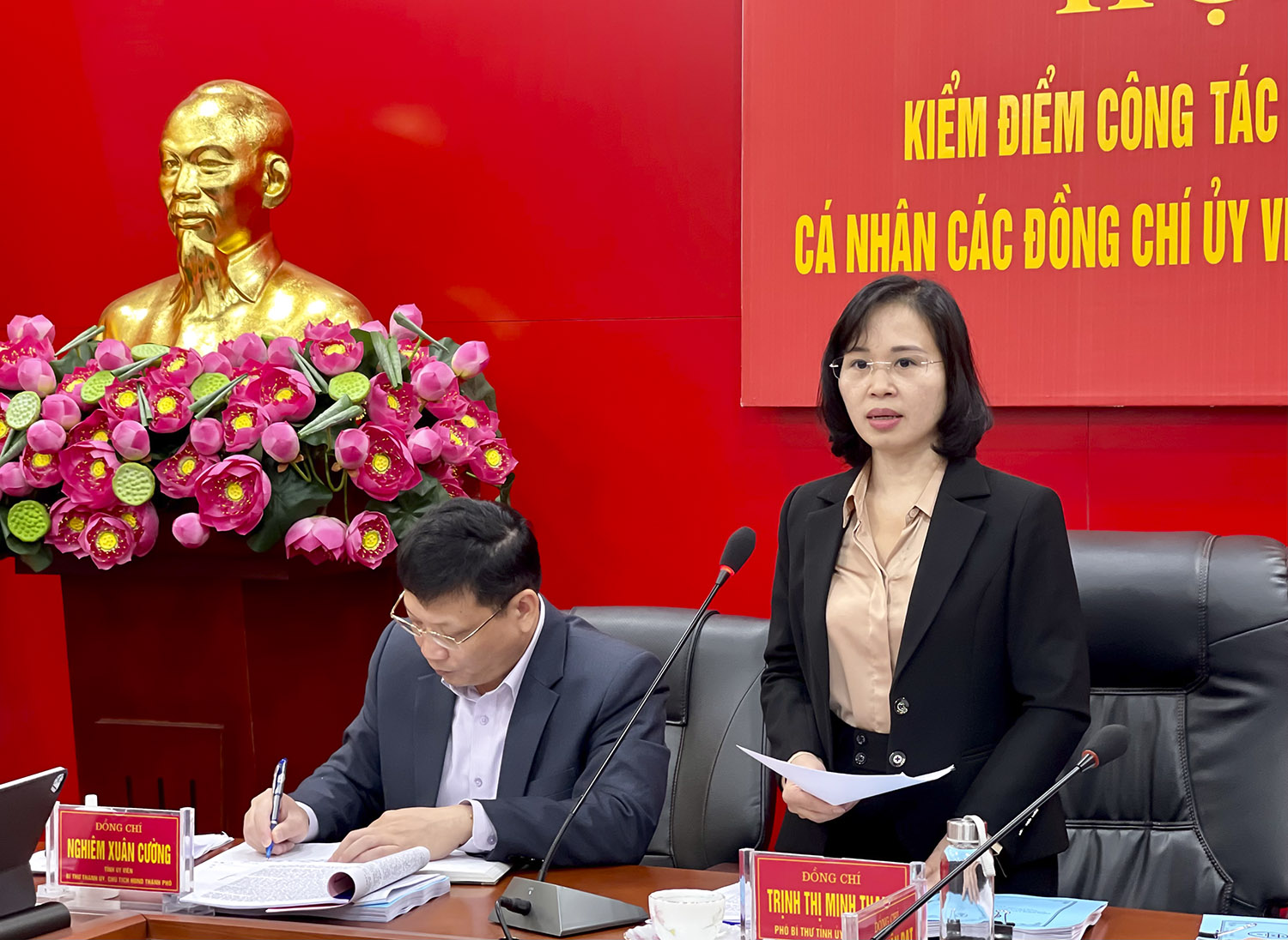 Phát biểu tại hội nghị, đồng chí Trịnh Thị Minh Thanh, Phó Bí thư Tỉnh ủy đánh giá cao việc chỉ đạo chuẩn bị tài liệu, công tác chuẩn bị kiểm điểm bám sát quy định của Ban Thường vụ Thành ủy Uông Bí. Về phương hướng, nhiệm vụ năm 2023, đồng chí đề nghị tập thể Ban Thường vụ Thành uỷ cần khẩn trương cụ thể hóa Nghị quyết của Tỉnh ủy, HĐND tỉnh về nhiệm vụ phát triển kinh tế - xã hội; chỉ đạo các địa phương sớm hoàn thành việc tổng kết công tác năm 2022; sớm hoàn thành Đề án chia tách, sắp xếp tổ chức các bộ máy phòng, ban sau chia tách. Đối với nội dung kiểm điểm cá nhân các đồng chí Uỷ viên Ban Thường vụ, đồng chí Phó Bí thư Tỉnh ủy đề nghị quá trình kiểm điểm, tham gia góp ý với các đồng chí phải chân tình, thẳng thắn, tránh việc khen nhiều hơn chê; đánh giá bỏ phiếu xếp loại một cách khách quan, đúng quy định, tránh việc đánh giá "dĩ hòa vi quý"...