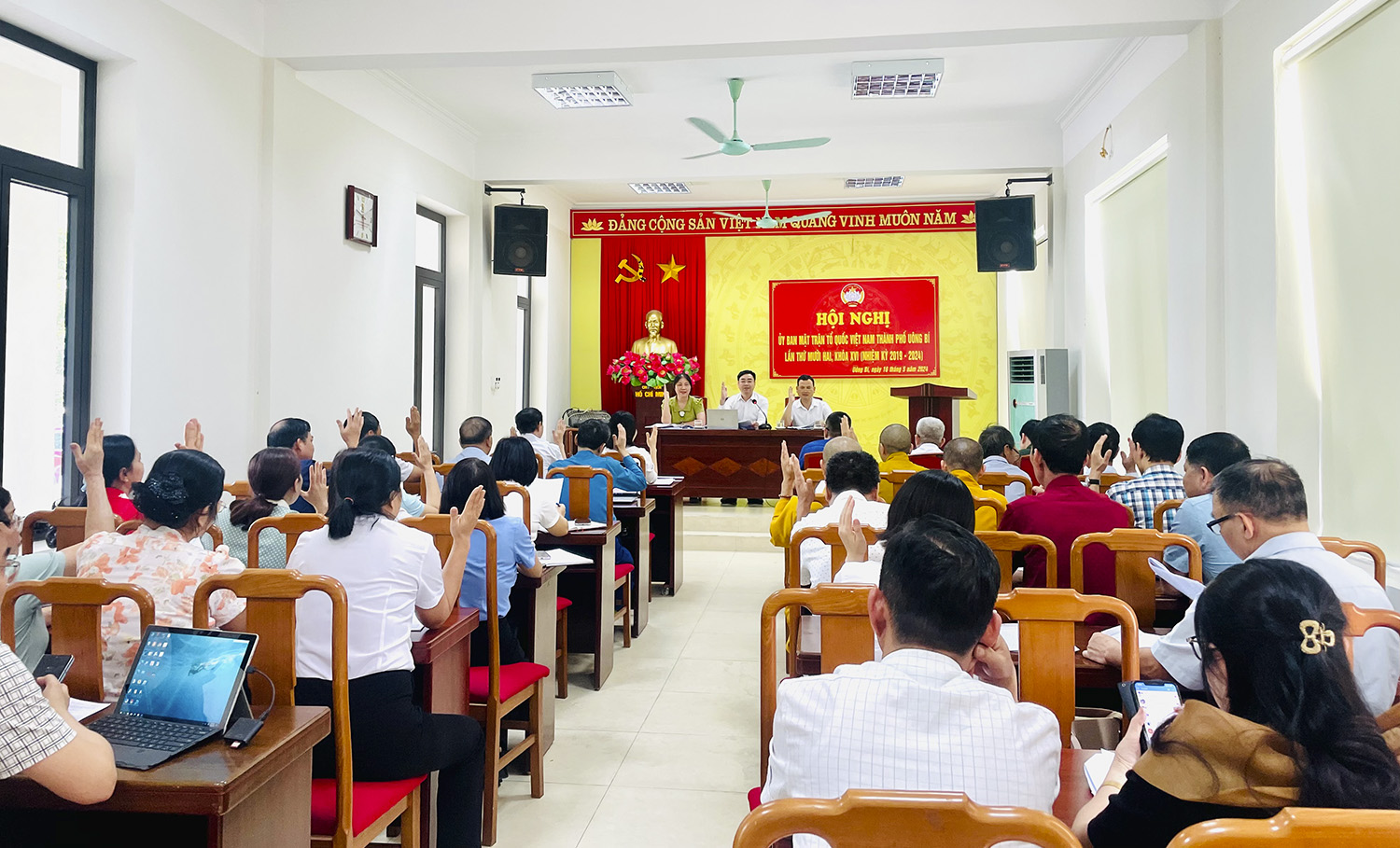 Chiều 16/5, Ủy ban MTTQ thành phố Uông Bí khóa XVI, nhiệm kỳ 2019-2024 tổ chức Hội nghị lần thứ XII. Ban Thường trực MTTQ thành phố gồm các đồng chí: Đào Ngọc Sơn, Uỷ viên BTV, Trưởng Ban Dân vận Thành ủy, Chủ tịch Ủy ban MTTQ thành phố; Hoàng Thị Thanh Huyền, Phó Chủ tịch Thường trực; Phạm Thái Sơn, Phó Chủ tịch Ủy ban MTTQ thành phố chủ trì.