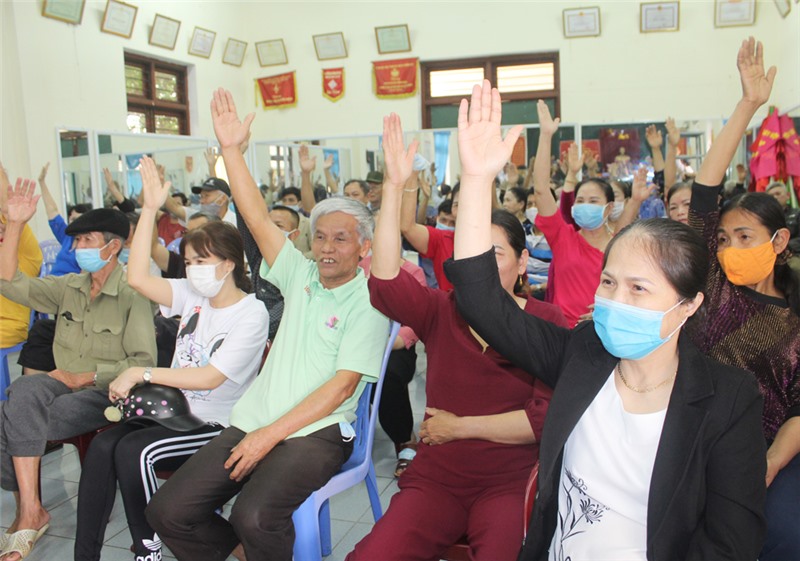 Hội nghị lấy ý kiến nhận xét và tín nhiệm của cử tri nơi cư trú đối với những người ứng cử đại biểu HĐND các cấp, nhiệm kỳ 2021 - 2026 tại khu Bí Trung 1, phường Phương Đông