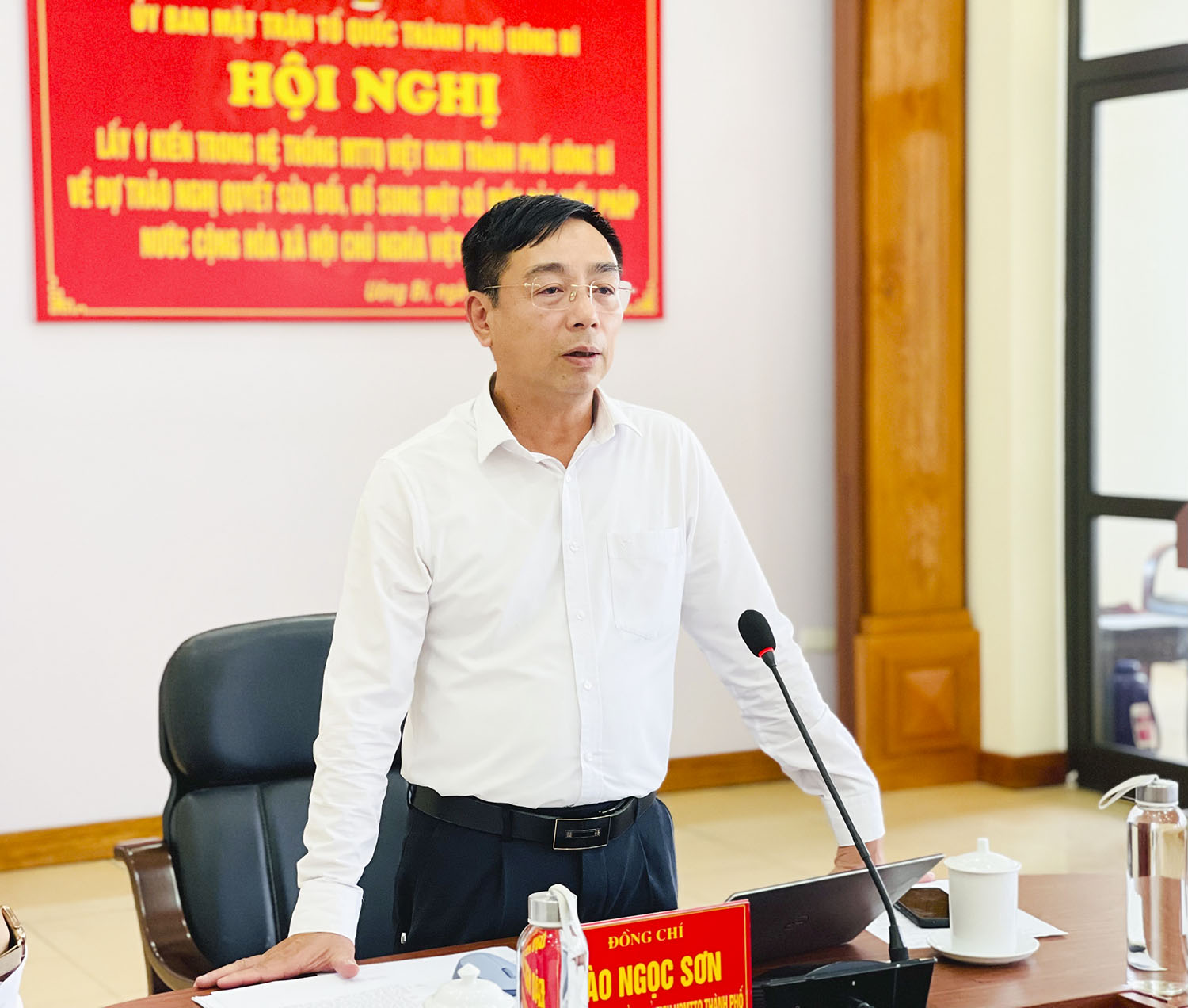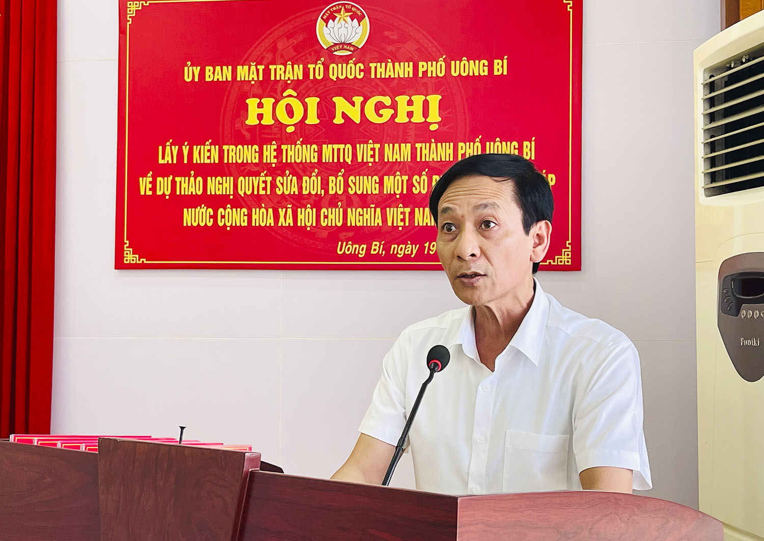 Chiều 19/5, Ủy ban MTTQ Việt Nam thành phố Uông Bí tổ chức Hội nghị lấy ý kiến trong hệ thống MTTQ thành phố về dự thảo Nghị quyết sửa đổi, bổ sung một số điều của Hiến pháp nước Cộng hòa xã hội chủ nghĩa Việt Nam năm 2013. Đồng chí Đào Ngọc Sơn, Ủy viên Ban Thường vụ Thành ủy, Chủ tịch Ủy ban MTTQ thành phố chủ trì hội nghị.