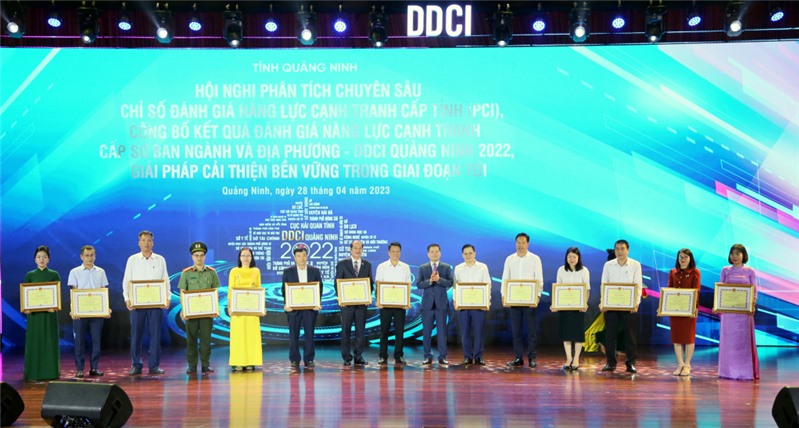 Nhân dịp này, UBND tỉnh tặng Bằng khen cho 7 tập thể, 30 cá nhân vì có thành tích xuất sắc trong cải thiện các chỉ số thành phần PCI Quảng Ninh năm 2022, giữ vững chỉ số PCI trong 6 năm liên tiếp; tặng Bằng khen và trao Kỷ niệm chương cho các tập thể, cá nhân xuất sắc trong DDCI 2022.
