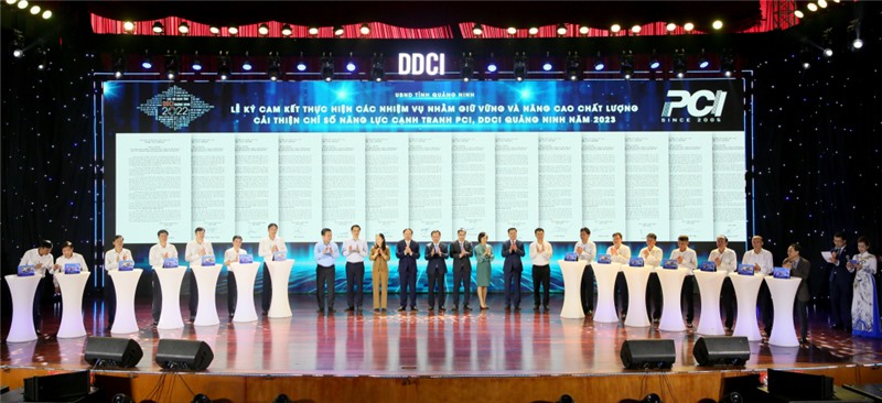 Tại hội nghị đã diễn ra lễ công bố kết quả DDCI 2022; lễ cam kết của các cơ quan đầu mối trong triển khai cải thiện bền vững PCI tỉnh Quảng Ninh năm 2023.