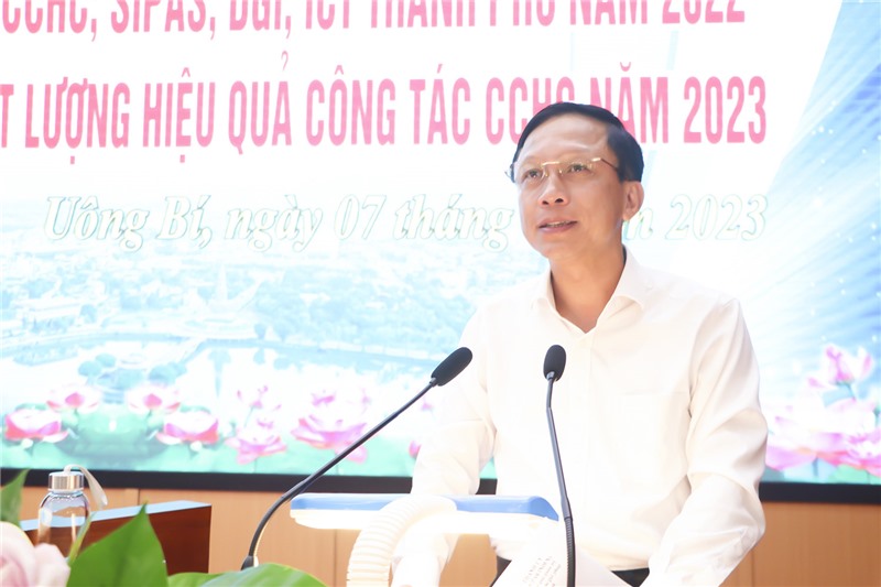 Chiều 7/7, TP Uông Bí tổ chức Hội nghị phân tích, đánh giá chỉ số cải cách hành chính PAR INDEX, ICT, DGI, SIPAS năm 2022. Dự hội nghị có các đồng chí: Nguyễn Chiến Thắng, Phó Bí thư Thường trực Thành ủy; Phạm Tuấn Đạt, Phó Bí thư Thành ủy, Chủ tịch UBND thành phố; Nguyễn Văn Thành, Uỷ viên BTV Thành ủy, Phó Chủ tịch Thường trực UBND thành phố.