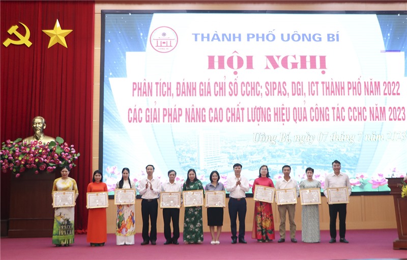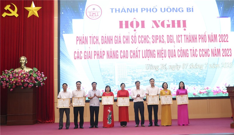 Tại hội nghị, UBND TP Uông Bí đã khen thưởng 15 tập thể và 24 cá nhân có thành tích xuất sắc trong công tác cải cách hành chính năm 2022.