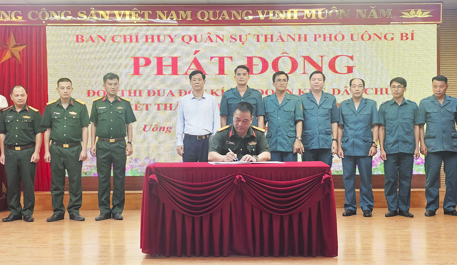 Tại hội nghị, Ban CHQS thành phố cũng đã tổ chức lễ ký kết phát động đợt thi đua đột kích với chủ đề "Đoàn kết, dân chủ, quyết thắng - lập công dâng Đảng".
