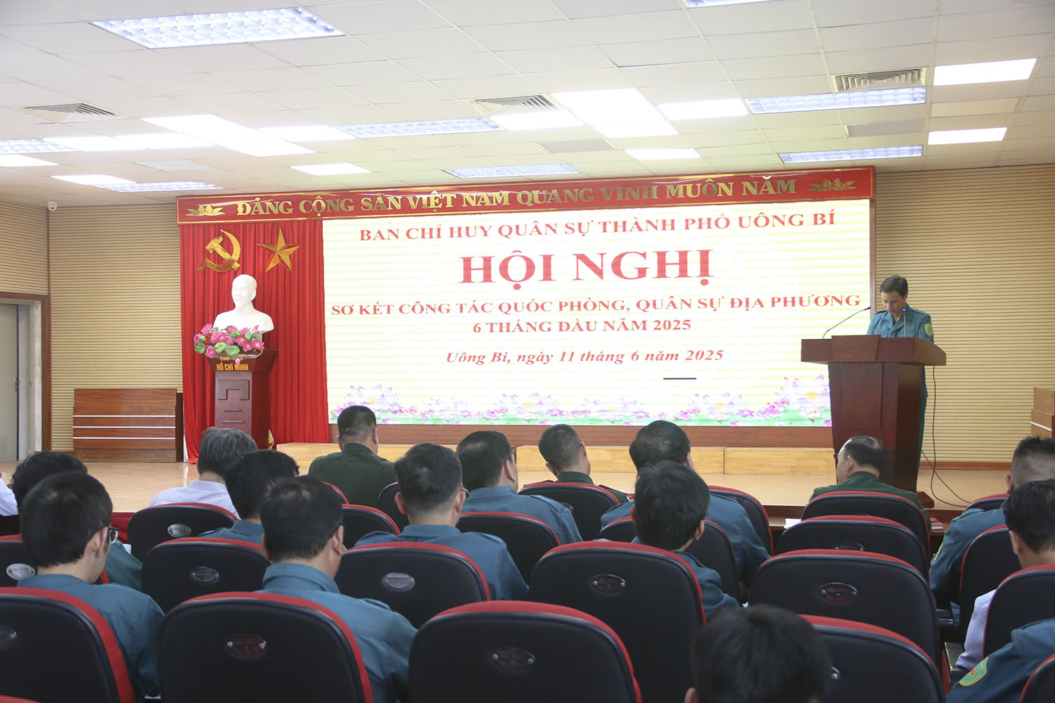 Chiều 11/6, Ban Chỉ huy Quân sự (CHQS) thành phố Uông Bí đã tổ chức hội nghị sơ kết công tác quốc phòng, quân sự địa phương 6 tháng đầu năm 2025. Dự hội nghị có đồng chí Phạm Tuấn Đạt, Phó Bí thư Thành ủy, Chủ tịch UBND thành phố; Thượng tá Nguyễn Tiến Vinh, Chỉ huy trưởng Ban CHQS thành phố.