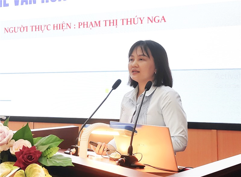 Báo cáo viên của Sở VHTT giới thiệu chuyên đề tập huấn tại hội nghị.