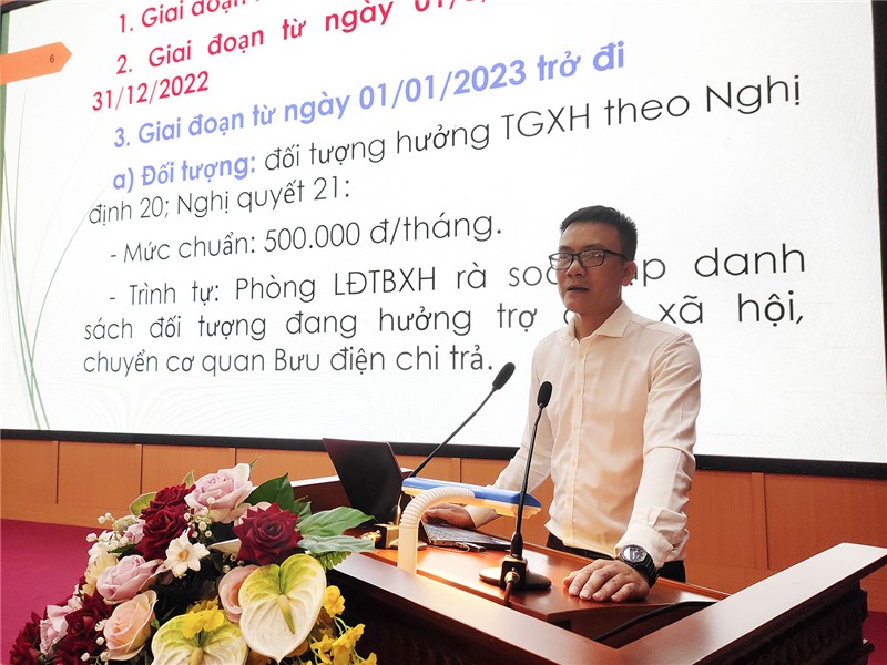 Cán bộ phòng nghiệp vụ của Sở LĐ - TB & XH tỉnh truyền đạt các nội dung tại hội nghị.