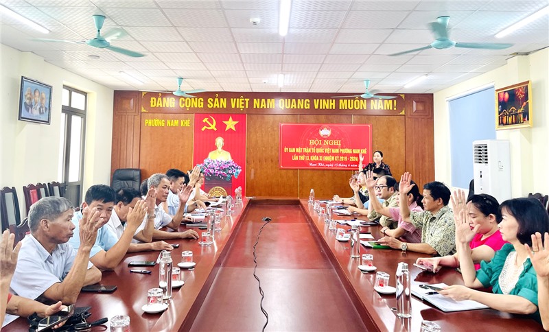 Chiều ngày 15/6, Uỷ ban MTTQ Việt Nam phường Nam Khê tổ chức Hội nghị lần thứ 13 (hội nghị bất thường) để hiệp thương, kiện toàn bầu bổ sung chức danh Chủ tịch Uỷ ban MTTQ Việt Nam phường khóa XI, nhiệm kỳ 2019 - 2024.