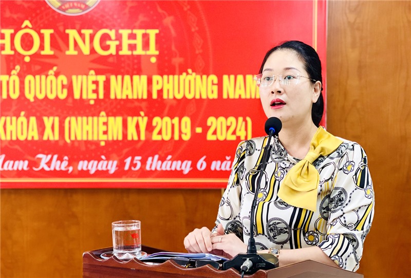 Phát biểu nhận nhiệm vụ, đồng chí tân Chủ tịch Uỷ ban MTTQ Vũ Thị Thuyết hứa, trên cương vị mới sẽ cùng với tập thể UB MTTQ phường tiếp tục phát huy những kết quả đã đạt được; phát huy sức mạnh khối đại đoàn kết toàn dân tộc, phối hợp với Đảng bộ, chính quyền địa phương, các tổ chức chính trị - xã hội thực hiện tốt nhiệm vụ chính trị được giao, góp phần xây dựng phường Nam Khê vững mạnh toàn diện.