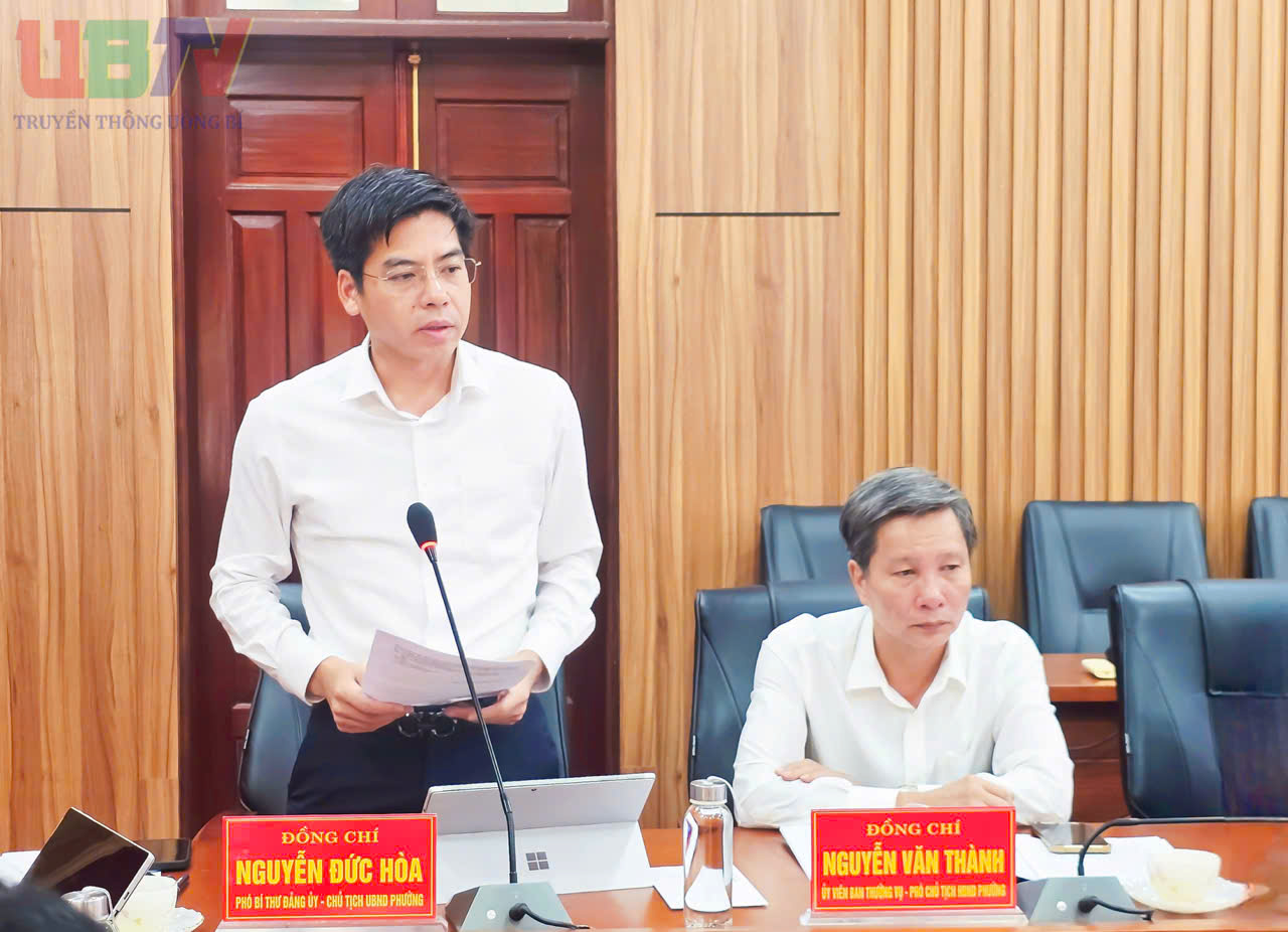 Đồng chí Hoàng Huy Toàn, Trưởng phòng Kinh tế, Hạ tầng & Đô thị phường Uông Bí báo cáo về công tác ứng phó với cơn bão số 9 Ragasa.