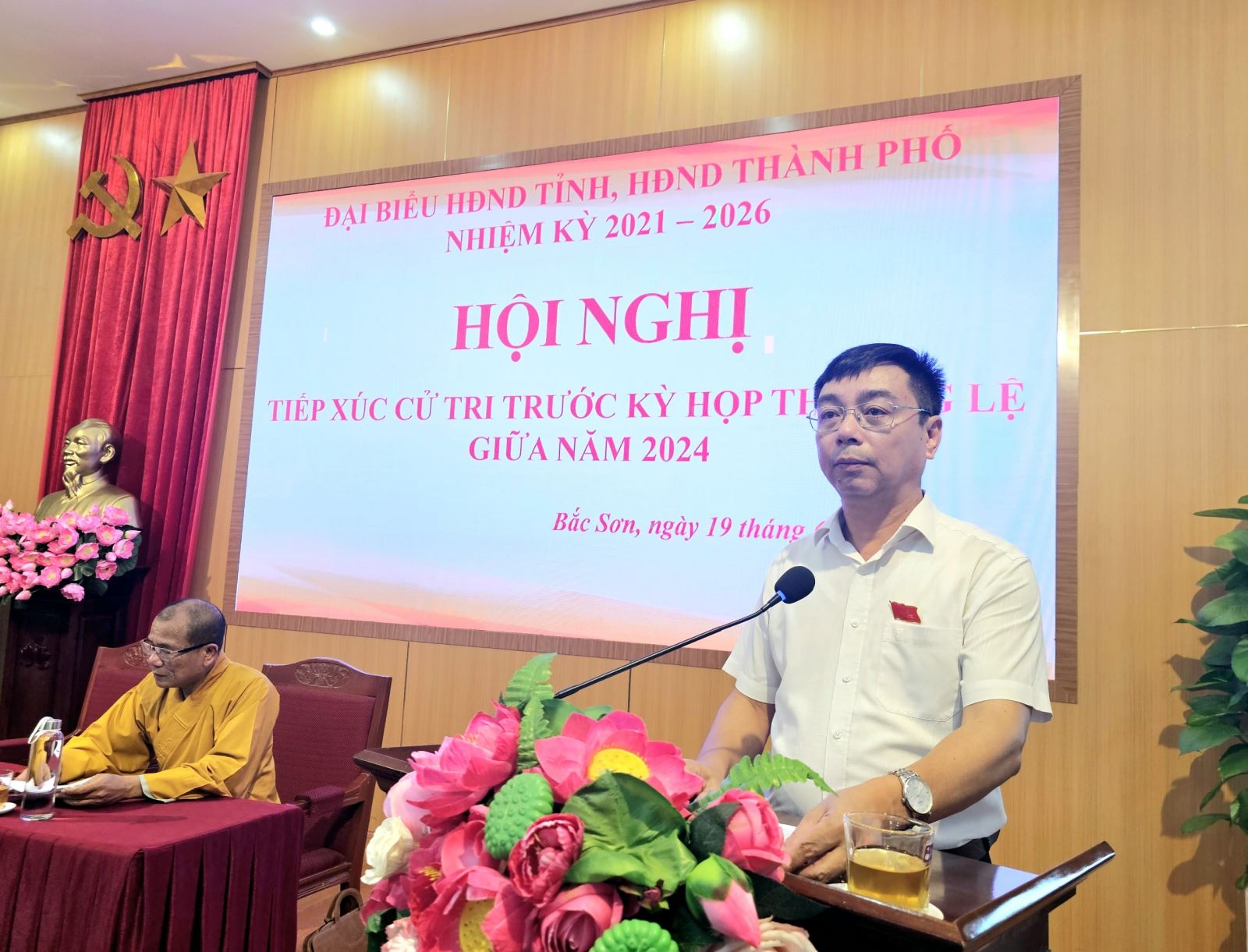 Cử tri phường Bắc Sơn cũng kiến nghị các cơ quan chức năng của tỉnh, thành phố xem xét, giải quyết một số nội dung liên quan đến công tác chỉnh trang đô thị, phòng chống thiên tai, sửa chữa cơ sở vật chất, thiết chế văn hóa ở khu dân cư...