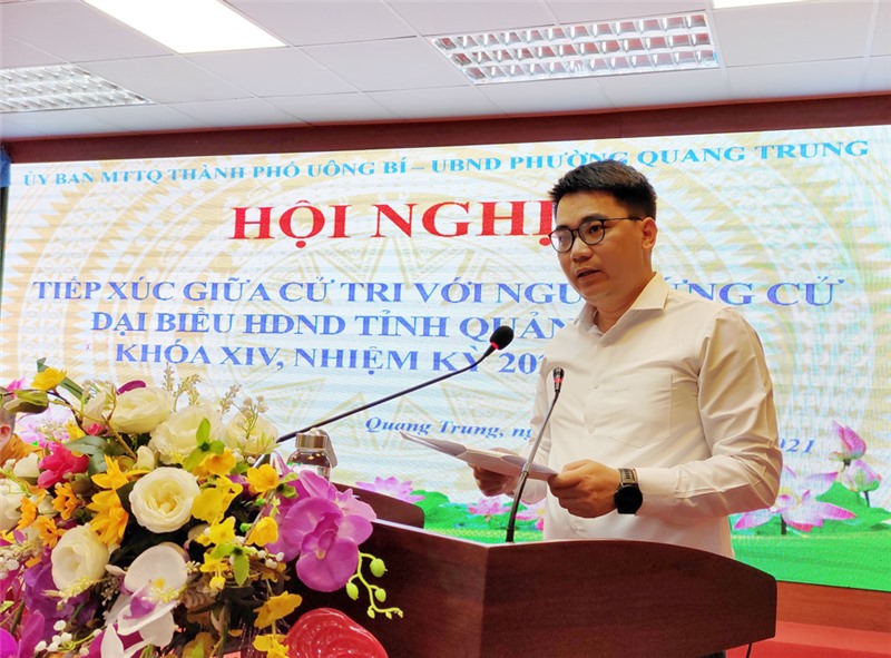 Tại hội nghị, đại biểu cử tri đã được nghe giới thiệu tiểu sử tóm tắt của 5 ứng cử viên Đại biểu HĐND tỉnh Quảng Ninh khoá XIV, nhiệm kỳ 2021-2026. Các ứng cử viên trình bày chương trình hành động của mình nếu được bầu làm đại biểu HĐND tỉnh khoá XIV, nhiệm kỳ 2021-2026. Theo đó, các ứng cử viên đều thể hiện quyết tâm cao để hoàn thành tốt nhiệm vụ của người đại biểu nhân dân.