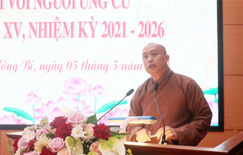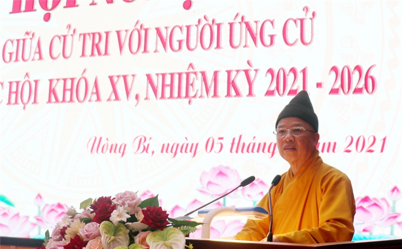 5 ứng cử viên ĐBQH khóa XV thuộc đơn vị bầu cử số 2 về tiếp xúc với cử tri TP Uông Bí gồm: Bà Đặng Thị Kim Chung - Phó Trưởng Ban Nội chính Tỉnh ủy Quảng Ninh; Bà Đỗ Thị Lan - Ủy viên Thường trực Ủy ban về các vấn đề xã hội của Quốc hội khóa XIV; Ông Ngô Hoàng Ngân - Phó Bí thư Thường trực Tỉnh ủy Quảng Ninh; Ông Lương Công Quyết (Hòa thượng Thích Thanh Quyết) - Phó Chủ tịch Hội đồng trị sự Trung ương Giáo hội Phật giáo Việt Nam, Trưởng Ban giáo dục Phật giáo Trung ương, Viện trưởng Học viện Phật giáo Việt Nam tại Hà Nội, Trưởng Ban trị sự Giáo hội Phật giáo Việt Nam tỉnh Quảng Ninh, trụ trì chùa Yên Tử; Ông Hoàng Anh Tuấn (Đại đức Thích Minh Tuấn) - Ủy viên Ban trị sự Giáo hội Phật giáo Việt Nam thị xã Đông Triều, tỉnh Quảng Ninh, trụ trì chùa Hổ Lao (Đông Triều).