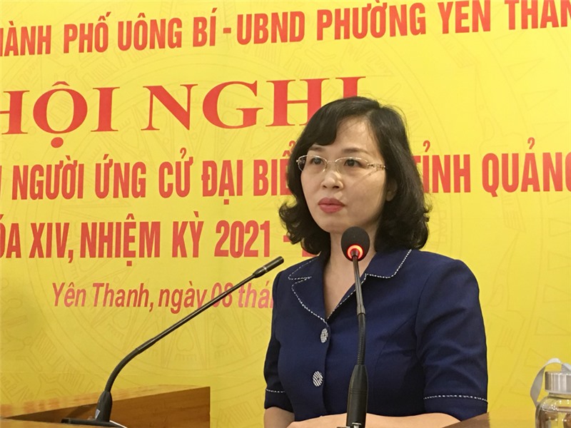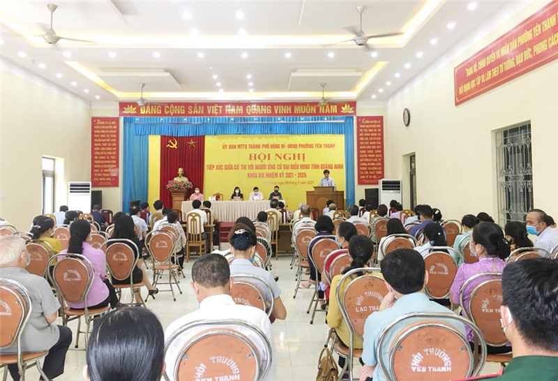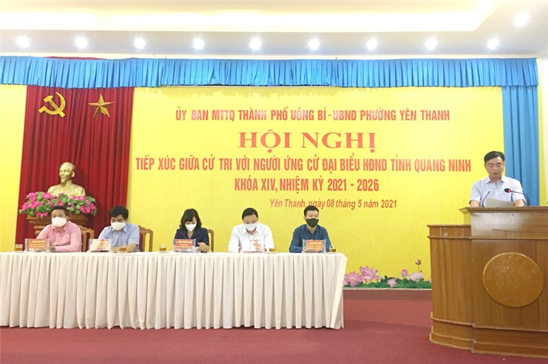 Tiếp xúc với cử tri 3 phường Yên Thanh, Nam Khê, Phương Nam có 5 ứng cử viên Đại biểu HĐND tỉnh Quảng Ninh khoá XIV, nhiệm kỳ 2021-2026, thuộc đơn vị bầu cử số 9 gồm: bà Trịnh Thị Minh Thanh, Uỷ viên BTV Tỉnh ủy, Phó Bí thư Đảng đoàn HĐND tỉnh, Phó Chủ tịch Thường trực HĐND tỉnh Quảng Ninh; ông Nghiêm Xuân Cường, Tỉnh ủy viên, Bí thư Thành ủy Uông Bí, Bí thư Đảng ủy Quân sự thành phố Uông Bí; ông Nguyễn Mai Hùng, Uỷ viên BTV Đảng ủy, Trưởng phòng Khảo thí đảm bảo chất lượng Trường Đại học Hạ Long; ông Nguyễn Văn Huỳnh, Uỷ viên BCH Đảng bộ trường, viên chức phòng Công tác Chính trị, Quản lý, Hỗ trợ học sinh sinh viên Trường Đại học Hạ Long; ông Nhâm Quốc Vượng, Phó Bí thư Đảng ủy, Chủ tịch HĐND xã Thượng Yên Công, thành phố Uông Bí.