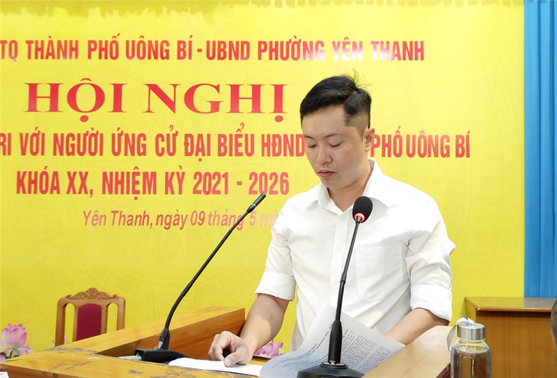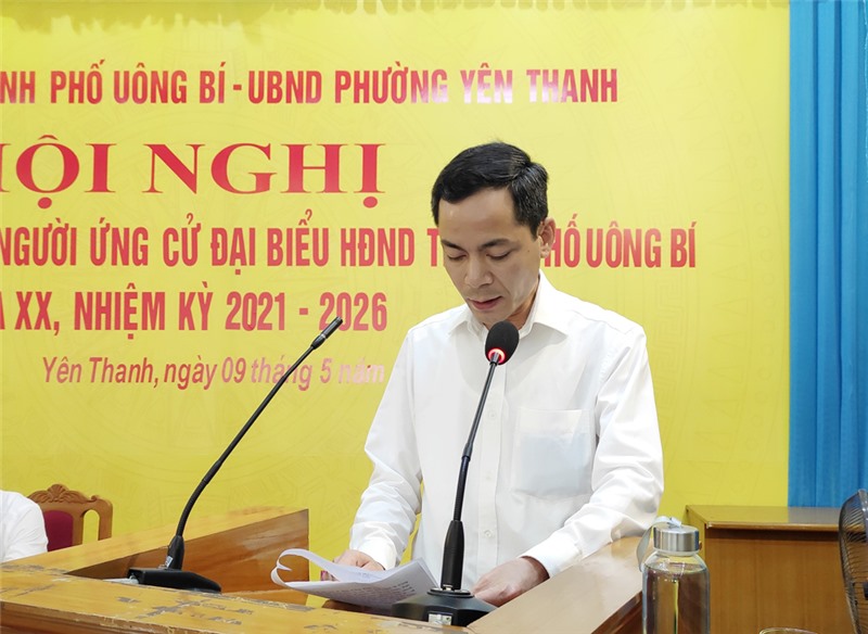 Ngày 9/5, tại UBND phường Yên Thanh diễn ra hội nghị tiếp xúc giữa cử tri phường Yên Thanh và Phương Nam với người ứng cử đại biểu HĐND thành phố khóa XX, nhiệm kỳ 2021-2026.