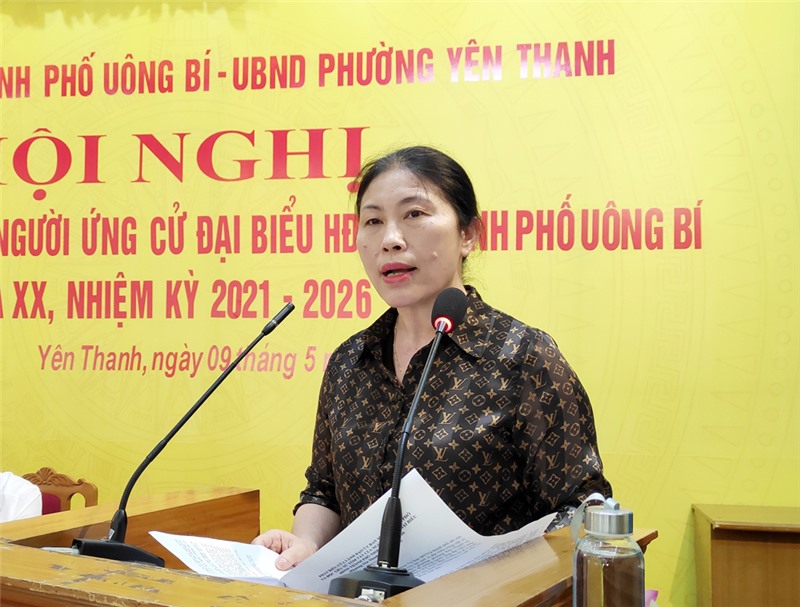 Tại hội nghị, cử tri đã được nghe tiểu sử tóm tắt của từng ứng cử viên. Các ứng cử viên báo cáo với cử tri về chương trình hành động của mình nếu được bầu là đại biểu HĐND thành phố. Từ nhận thức về vị trí, vai trò và trách nhiệm của bản thân, các ứng cử viên cũng sẽ cố gắng hết sức mình để góp phần phát triển kinh tế xã hội thành phố Uông Bí. Nếu được cử tri tin tưởng bầu làm đại biểu HĐND thành phố, các ứng cử viên sẽ phát huy vai trò trách nhiệm của người đại biểu nhân dân, luôn gần gũi, lắng nghe tâm tư, nguyện vọng của dân, ghi nhận và truyền đạt ý kiến, kiến nghị của nhân dân đến với HĐND thành phố.