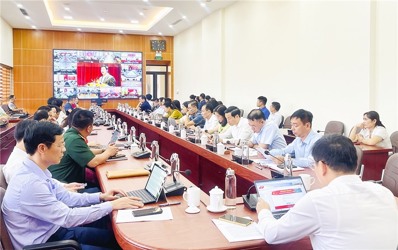 Dự tại điểm cầu thành phố có các đồng chí: Nghiêm Xuân Cường, Tỉnh ủy viên, Bí thư Thành ủy, Chủ tịch HĐND thành phố; Phạm Tuấn Đạt, Phó Bí thư Thành ủy, Chủ tịch UBND thành phố cùng lãnh đạo HĐND, UBND, UB MTTQ thành phố; lãnh đạo các phòng, ban, ngành trực thuộc UBND thành phố; Bí thư, Phó Bí thư chi Đảng bộ trực thuộc.