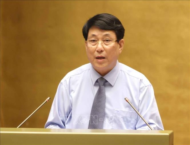 Đồng chí Lương Cường, Ủy viên Bộ Chính trị, Thường trực Ban Bí thư, phát biểu chỉ đạo tại hội nghị. Ảnh: Thông tấn xã Việt Nam