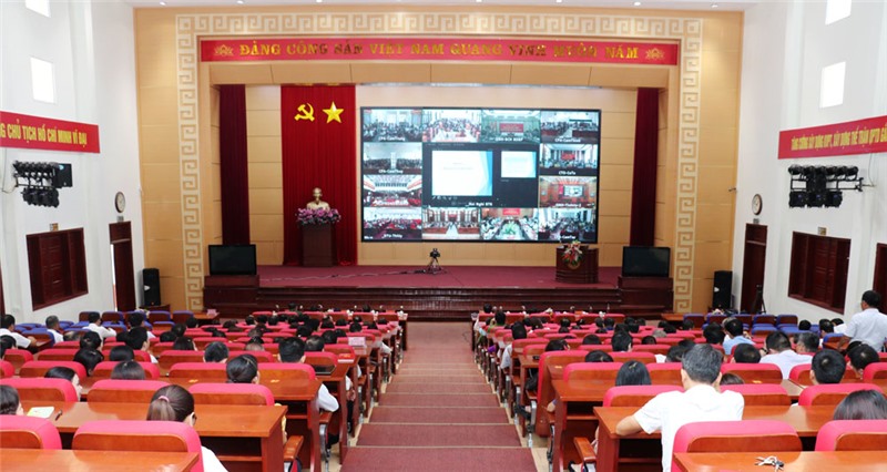 Quang cảnh hội nghị tại điểm cầu TP Uông Bí.