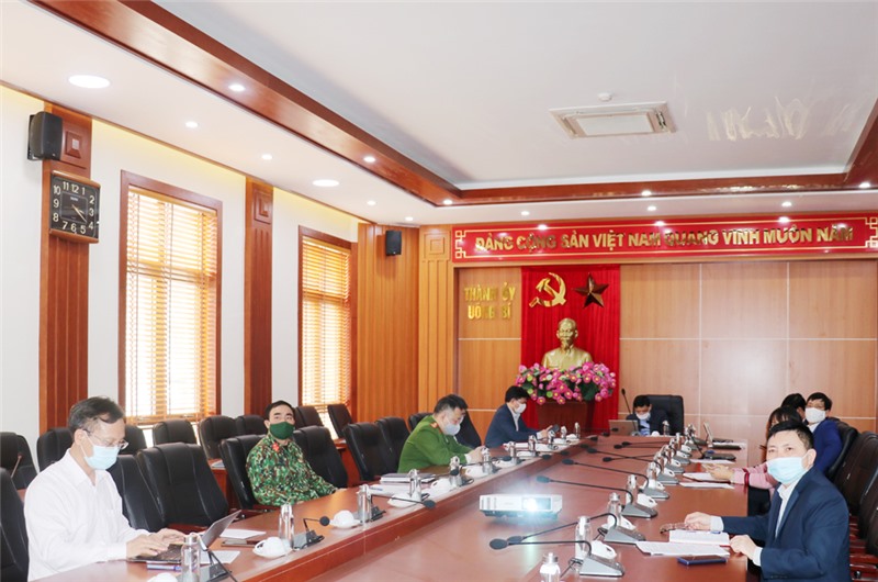 Tại điểm cầu Uông Bí, đồng chí Nghiêm Xuân Cường, Tỉnh ủy viên, Bí thư Thành ủy, Trưởng BCĐ phòng chống dịch Covid-19 thành phố chủ trì hội nghị.