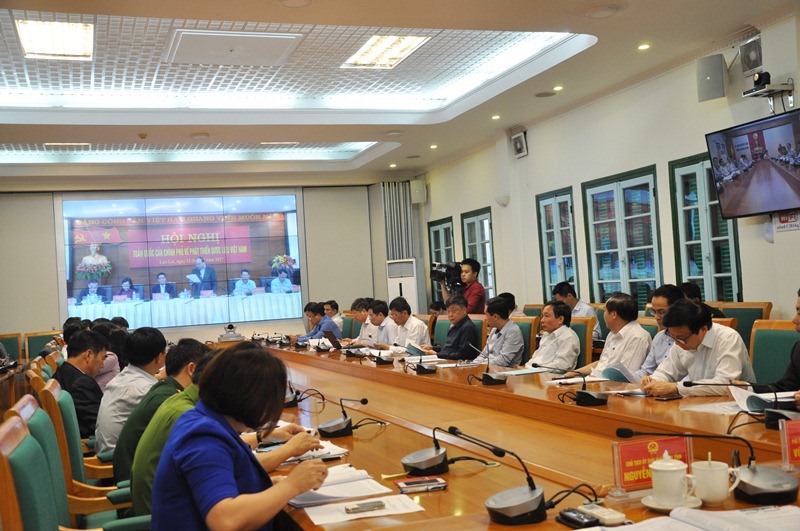 Quang cảnh hội nghị tại điểm cầu Quảng Ninh.