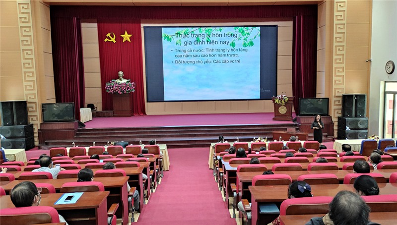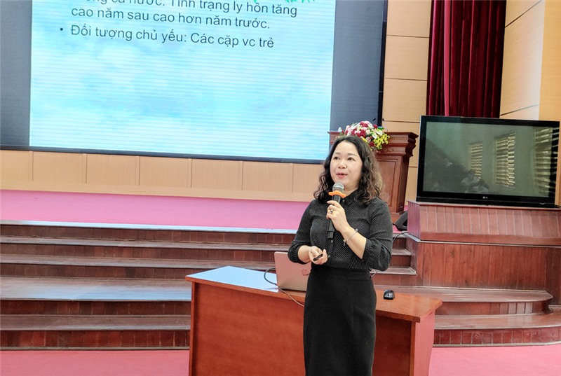 Trong chương trình, các đại biểu đã được lãnh đạo Chi cục DSKHHGĐ, lãnh đạo Phòng nghiệp vụ Sở Văn hóa - Thể thao truyền đạt nội dung các chuyên đề về: thực trạng ly hôn trong gia đình Việt Nam hiện nay, những nguyên tắc ứng xử, kỹ năng xử lý tình huống đối với các thành viên trong gia đình; những ảnh hưởng của mạng xã hội đối với đời sống gia đình, với quan hệ vợ chồng; vai trò của gia đình trong việc bảo vệ, chăm sóc sức khỏe sinh sản vị thành niên, thanh niên; bình đẳng giới trong gia đình, các biện pháp phòng chống bạo lực, xâm hại đối với phụ nữ và trẻ em. Trong quá trình truyền đạt, báo cáo viên cũng đã lồng ghép các nội dung truyền thông với thực tế tại cơ sở, phân tích nguyên nhân, đề xuất các giải pháp với mỗi vấn đề.